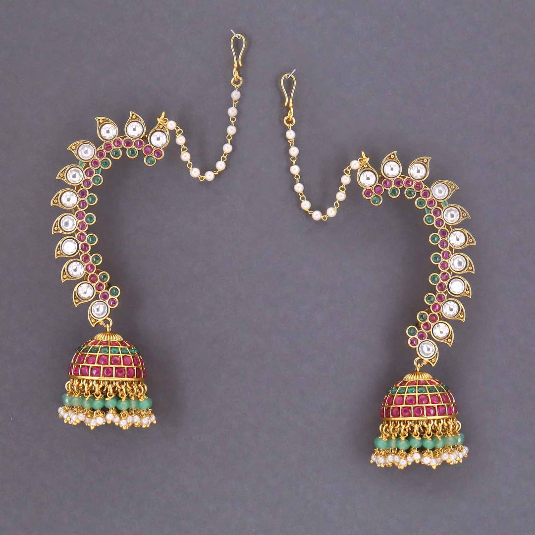Multicolor Abeeha Ear Cuff Jhumkis
