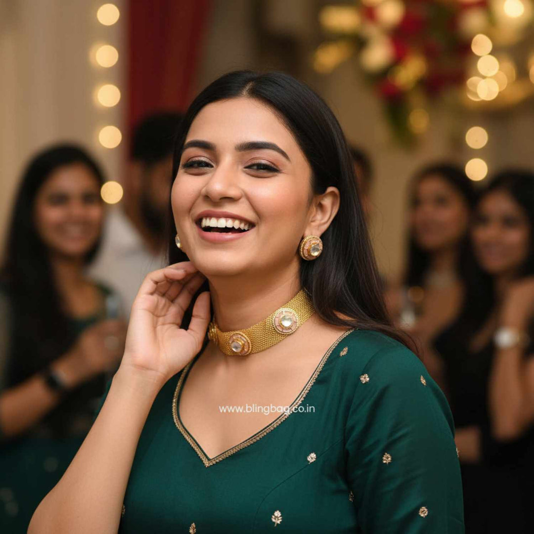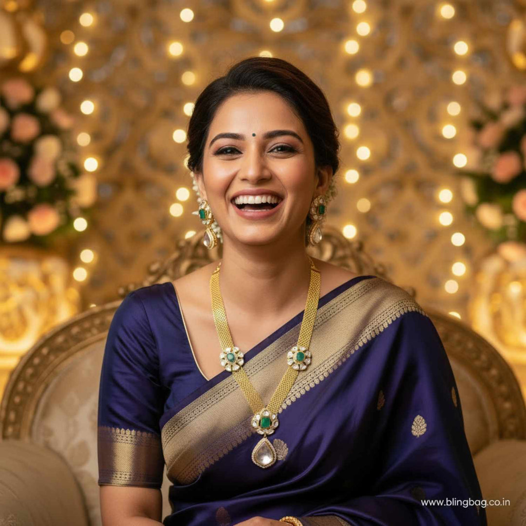 Blingbag’s Antique Jewellery Sets offer a beautiful fusion of heritage design and vintage-inspired detailing. These sets feature oxidised finishes, intricate carvings, temple motifs and traditional stonework — perfect for women who appreciate jewellery with depth, story and timeless charm.