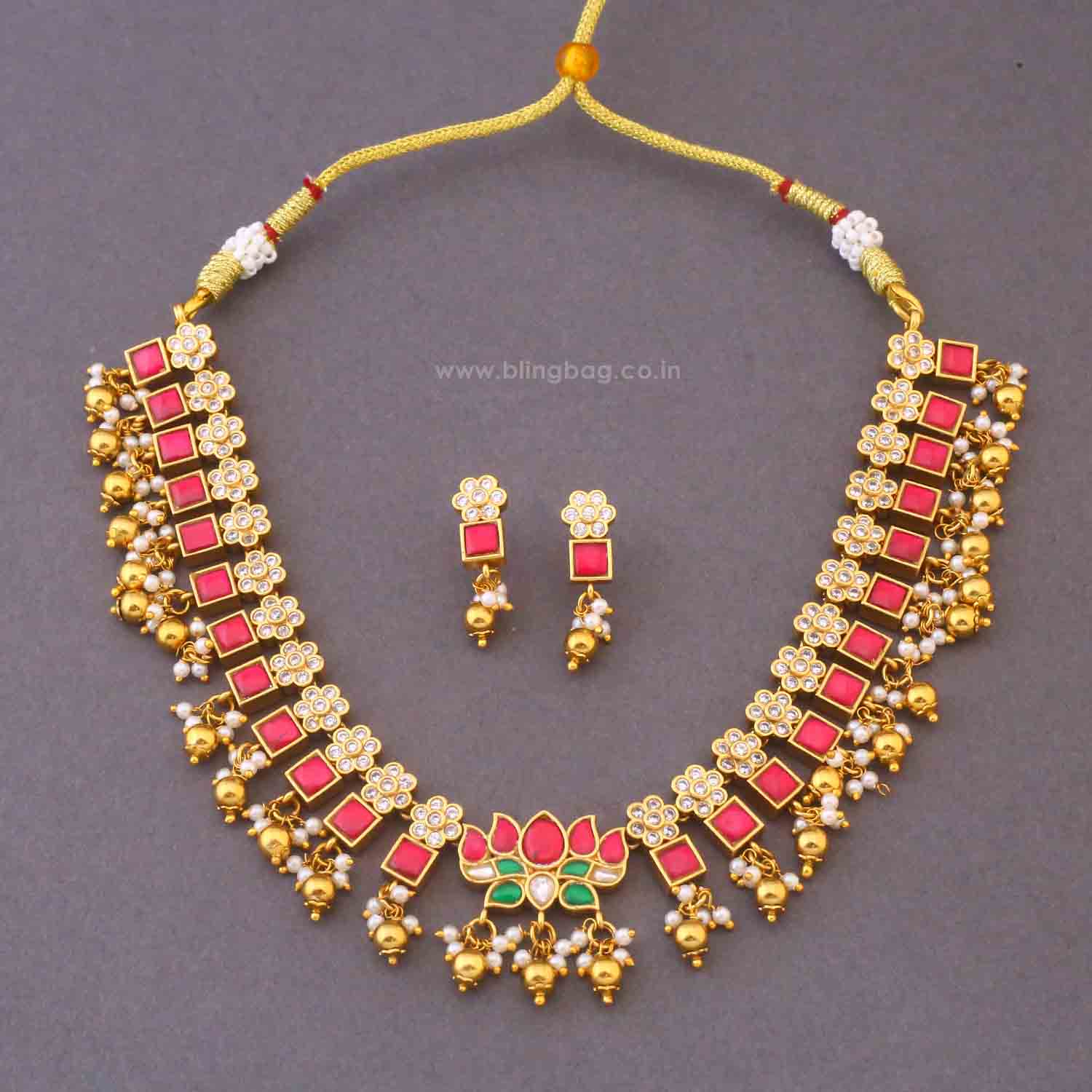 The handcrafted lotus motif adds a traditional touch with a rich South Indian temple-jewellery vibe.
