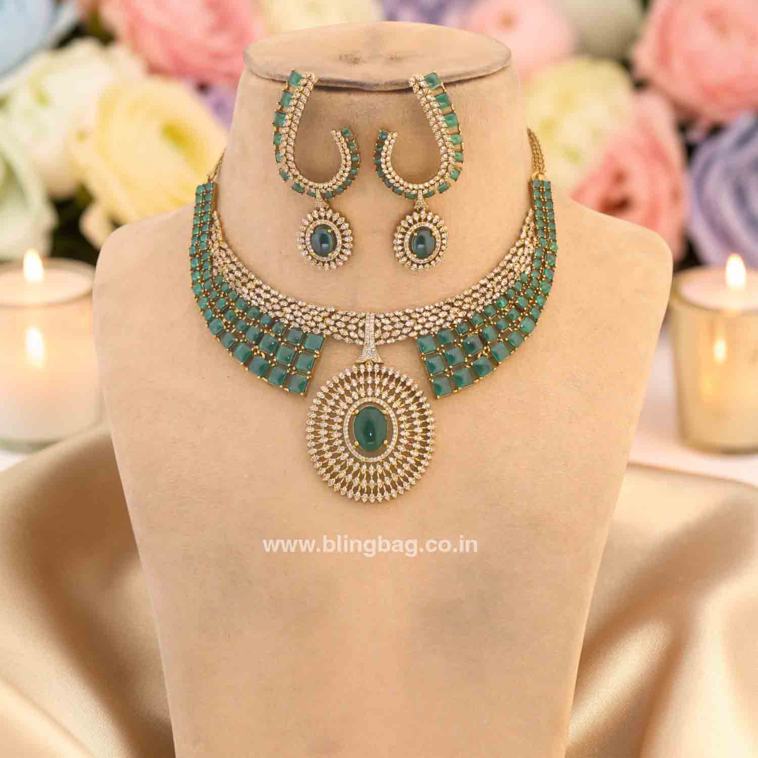 Celebrate the fusion of vintage Victorian charm and bold modern structure with the Emerald Sophina Set. This "Hasli" style choker is designed for the woman who seeks a regal, high-fashion statement that bridges the gap between heritage and contemporary artistry.