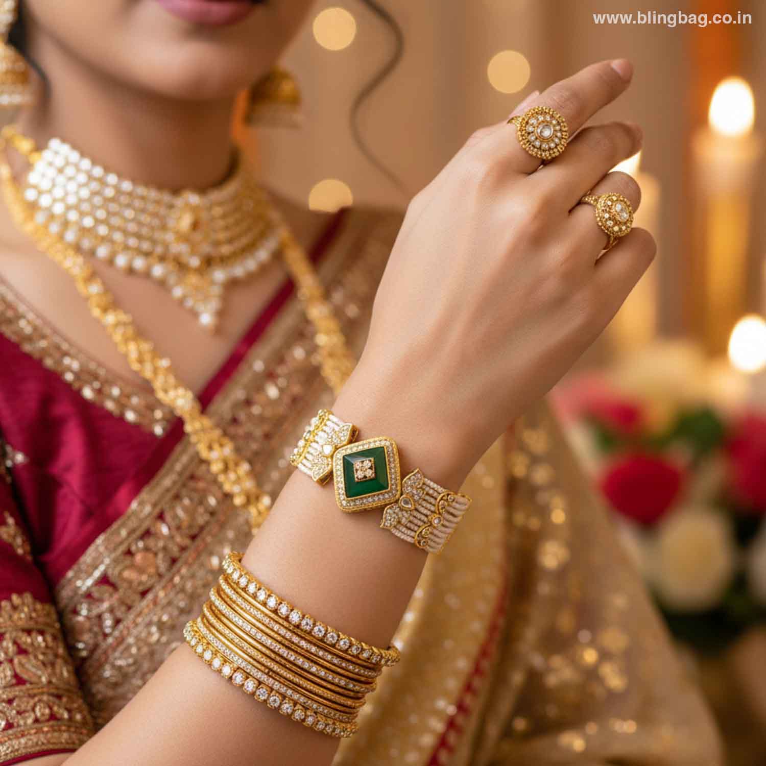 Pair it with sarees, lehengas, or traditional suits for weddings and celebrations. It looks stunning when styled with matching earrings and a minimal ring. Let the bracelet shine by keeping other wrist accessories subtle and elegant.