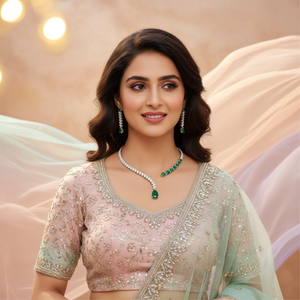Premium quality American diamond set with superb gemstones crafted for festive wedding and your upcoming special occasions.