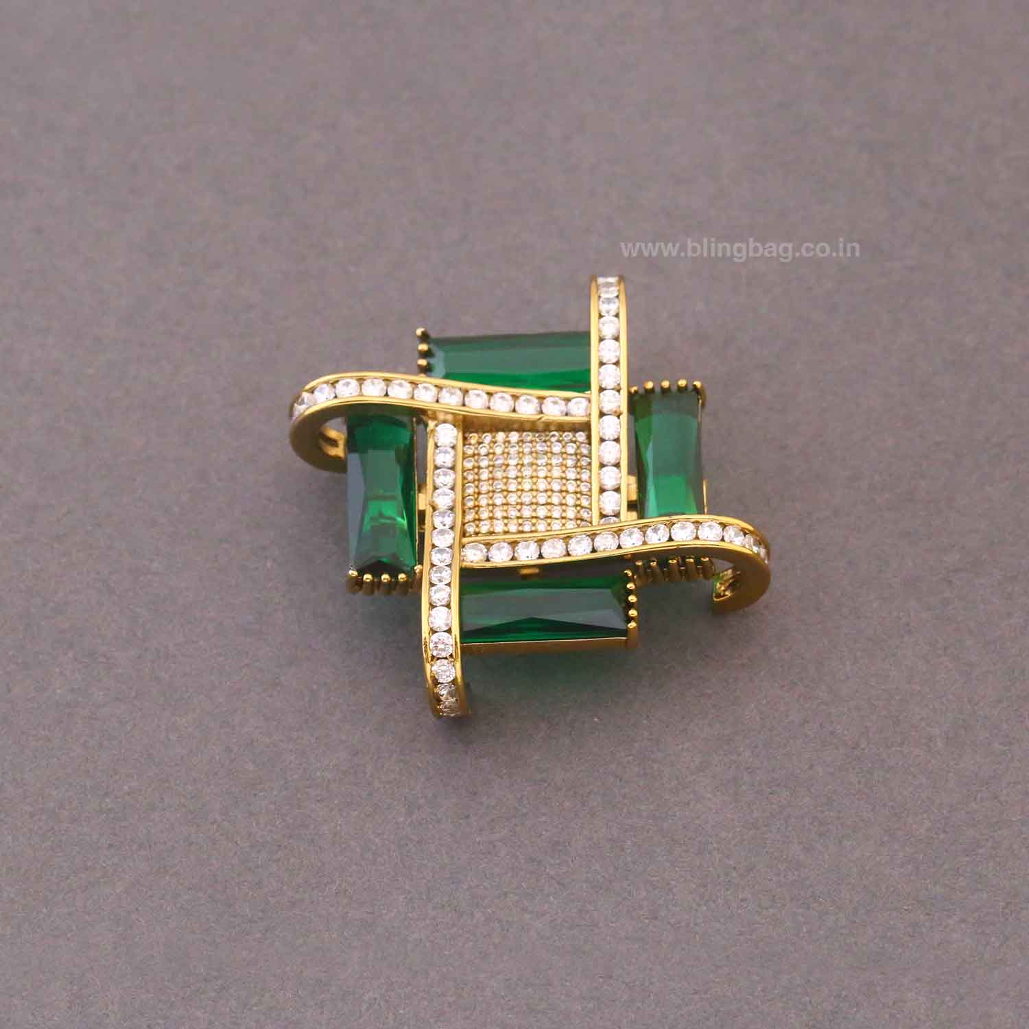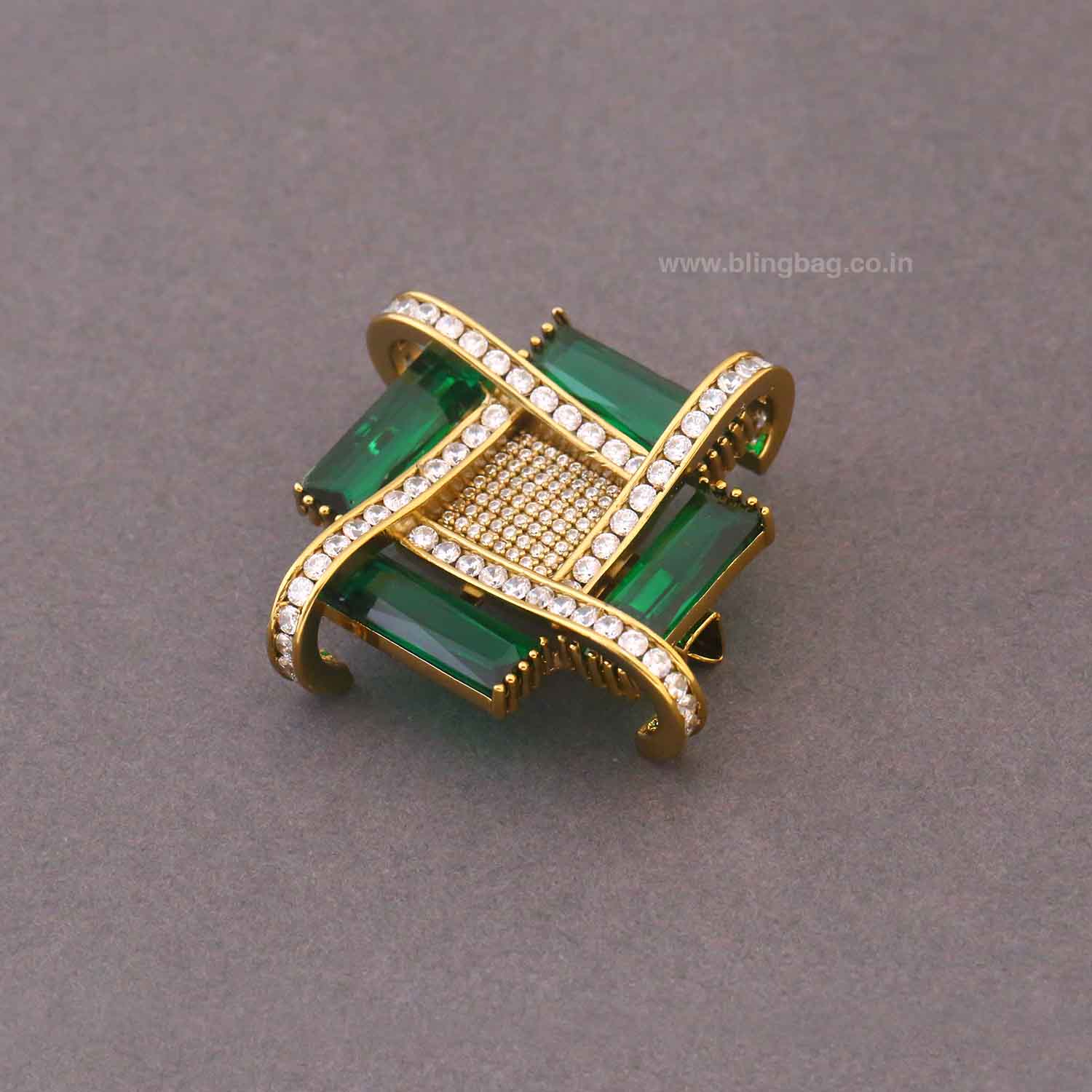 Add a touch of modern sophistication to your ensemble with the Emerald Baguette Brooch. This architectural piece combines bold geometric lines with the classic allure of deep green gemstones, making it an essential accessory for the fashion-forward individual.