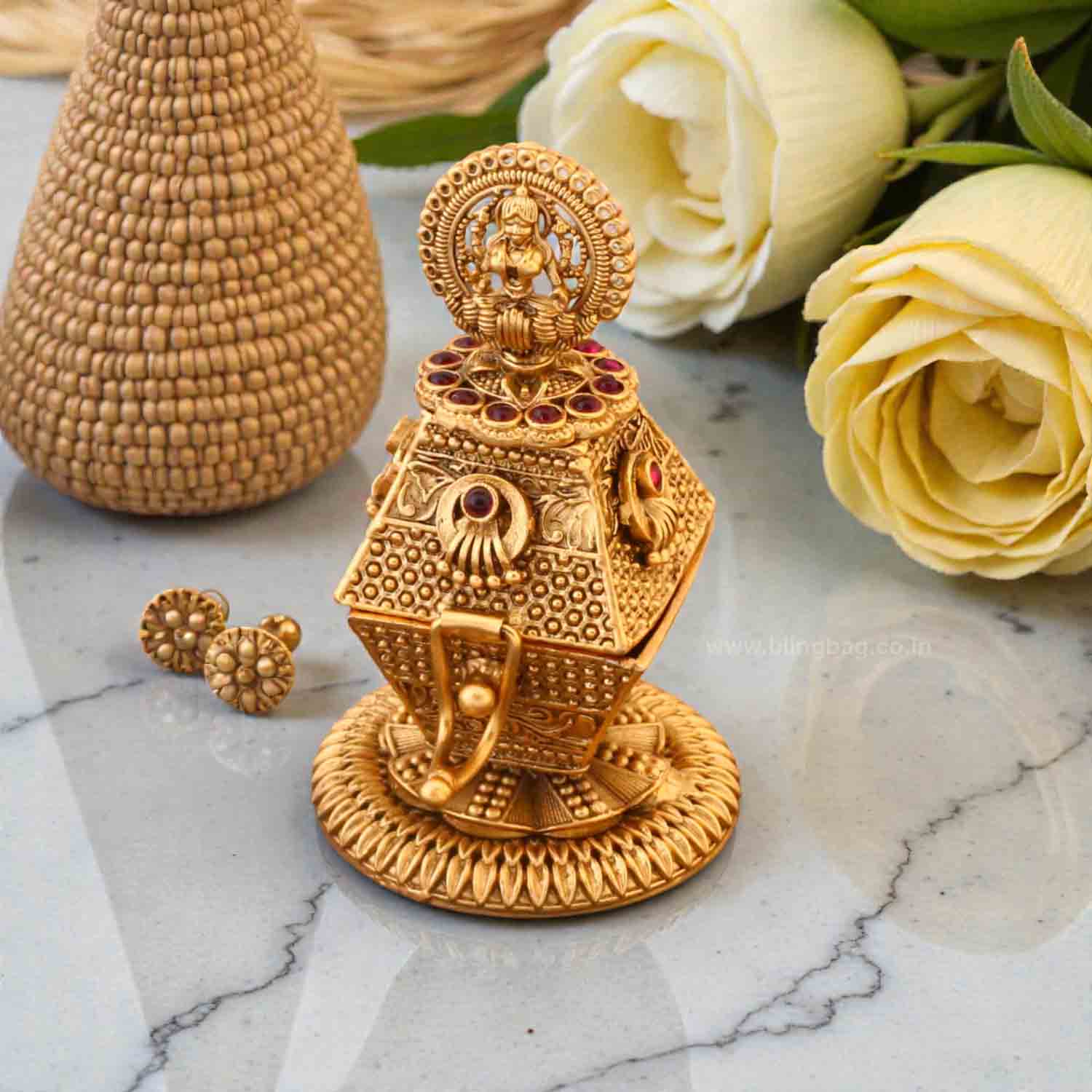 Embrace tradition with this beautifully crafted Sundoor Dani, designed with intricate detailing and temple-inspired motifs. Its elegant design symbolizes purity and auspiciousness, making it a timeless addition for rituals, weddings, and festive occasions.
