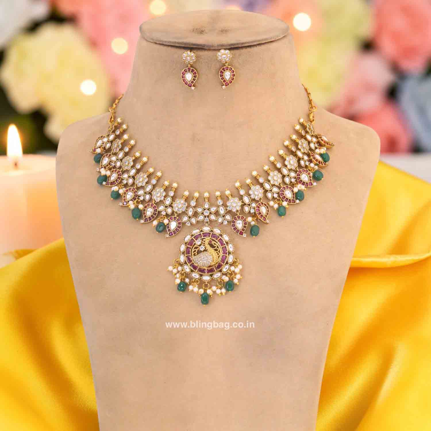 Pair with silk sarees or lehengas in red, green, or gold tones for a royal traditional look.