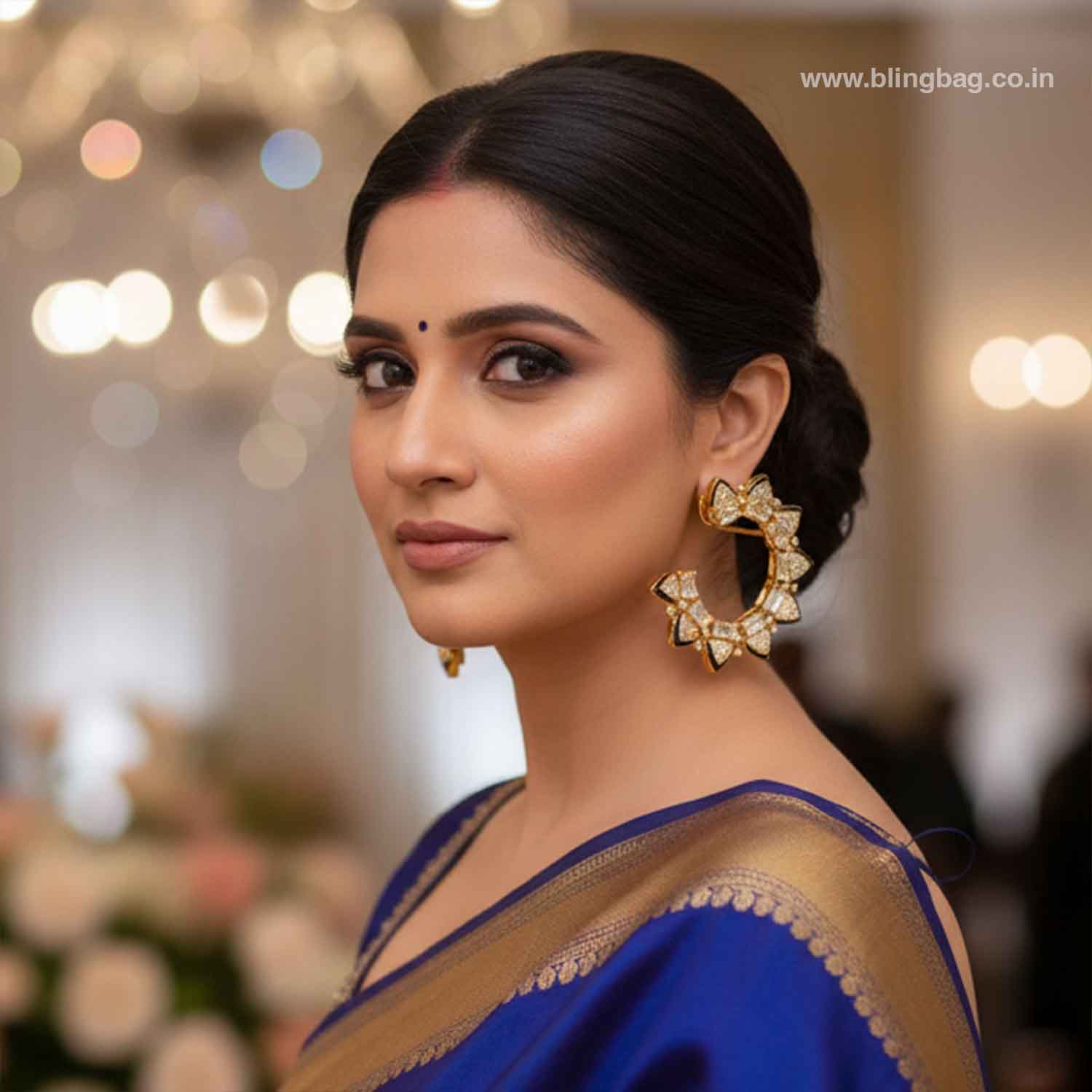 Pair these statement studs with a sleek bun or soft curls and style them with a saree, lehenga, or elegant evening dress to highlight their glamorous sparkle and sophisticated design.