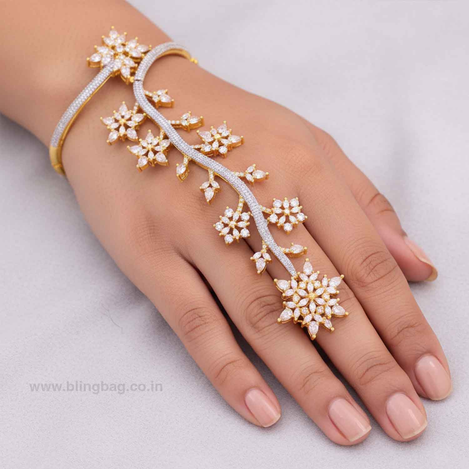 Golden Harpera Zirconia Hath Phool