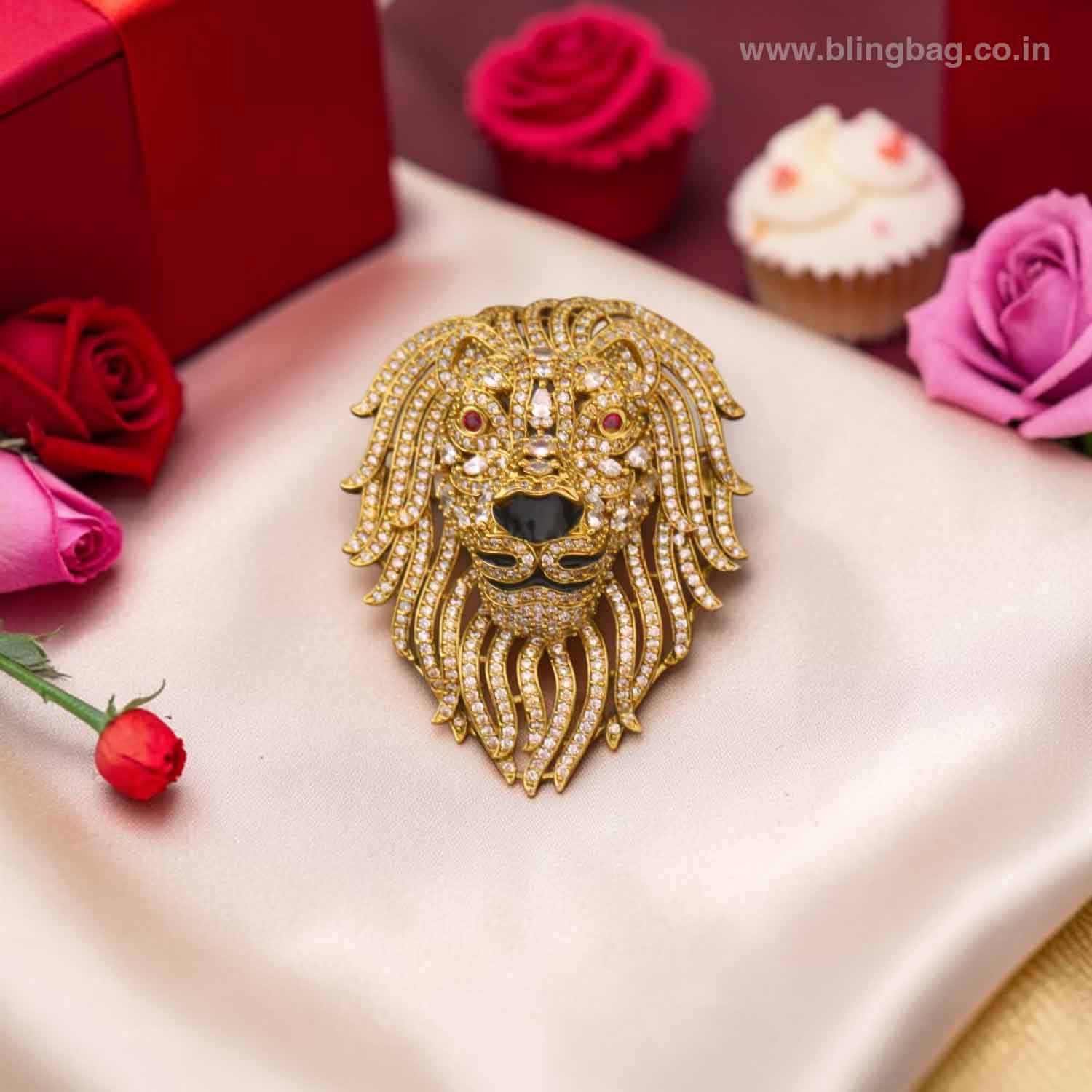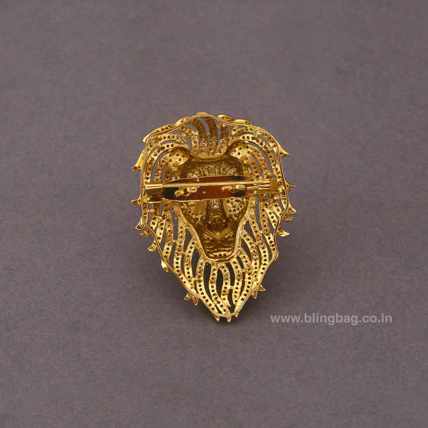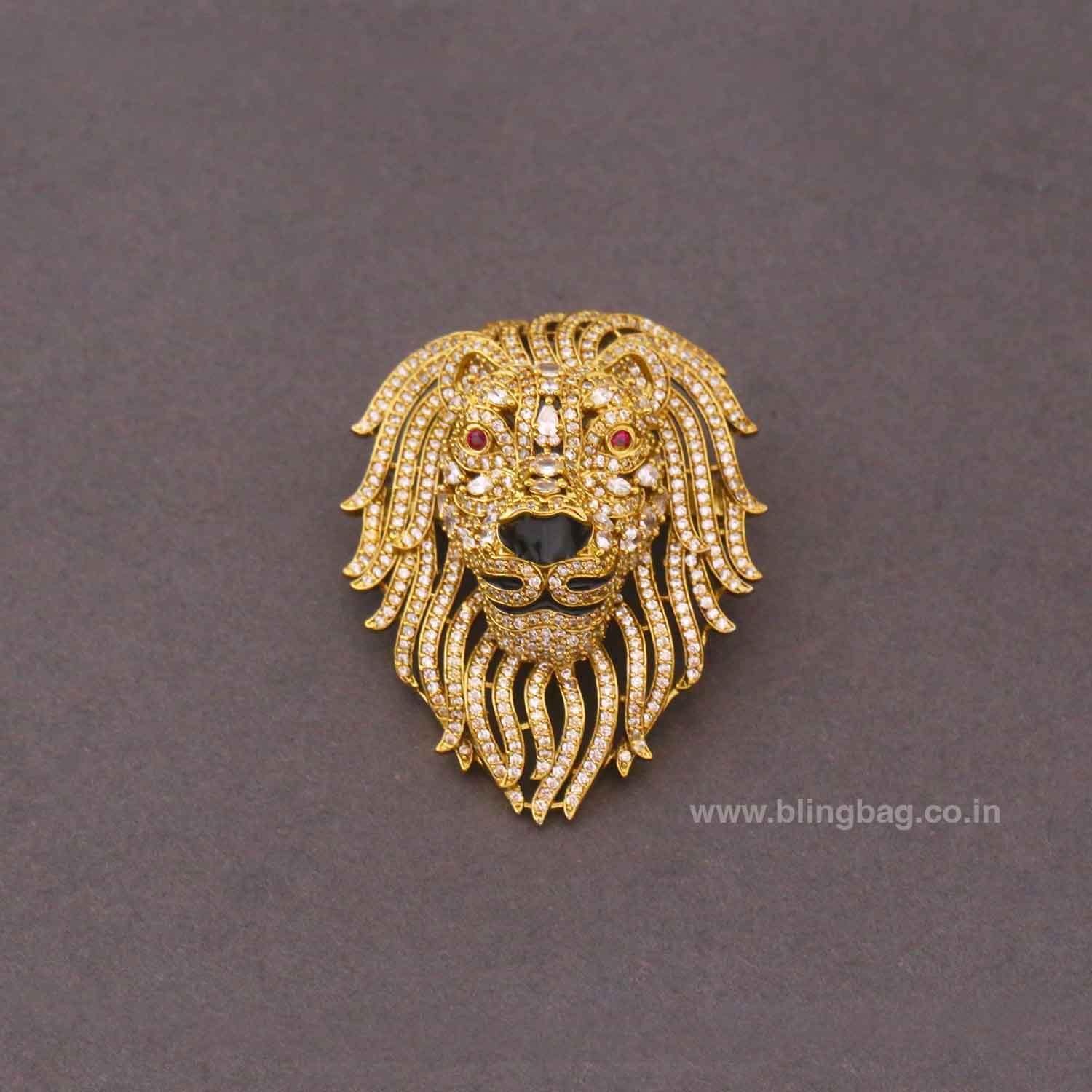 This striking lion-inspired brooch is a bold expression of power and elegance. Designed with intricate detailing, the majestic face is beautifully sculpted with fine embellishments that enhance its regal appeal. The flowing mane is crafted with precision, creating a dynamic and luxurious look. A statement accessory, this brooch embodies strength, confidence, and timeless style.