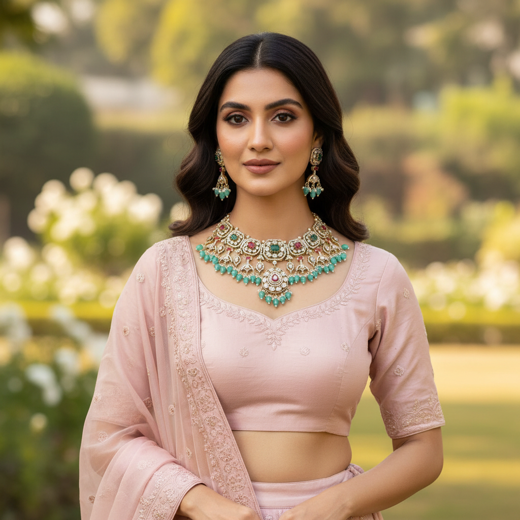 Crafted with intricate Victorian-inspired detailing, this necklace set adds timeless charm to your collection. Perfectly balanced with elegance and grace, it’s designed to complement both festive and contemporary looks.
