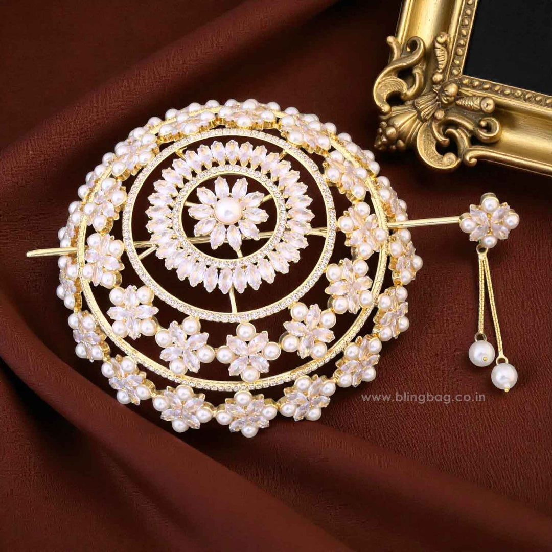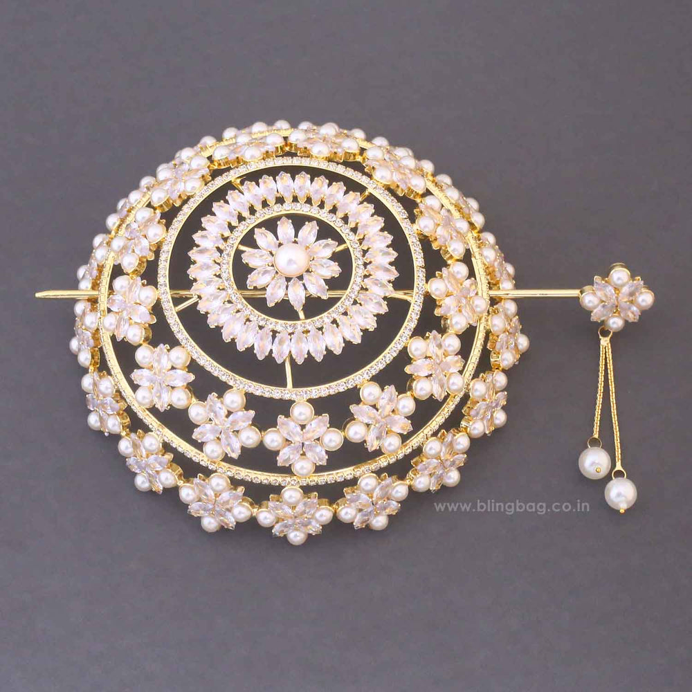 Blingbag presents the most stunning Hair Bun Cage Collection designed especially for the Indian wedding season. Whether you’re a bride, bridesmaid or wedding guest, our hair bun cages add an elegant and glamorous touch to your traditional hairstyle. Featuring dazzling stones, pearls, crystals, Kundan elements and AD detailing, each bun cage enhances your juda style with effortless shine.