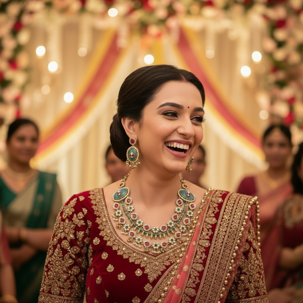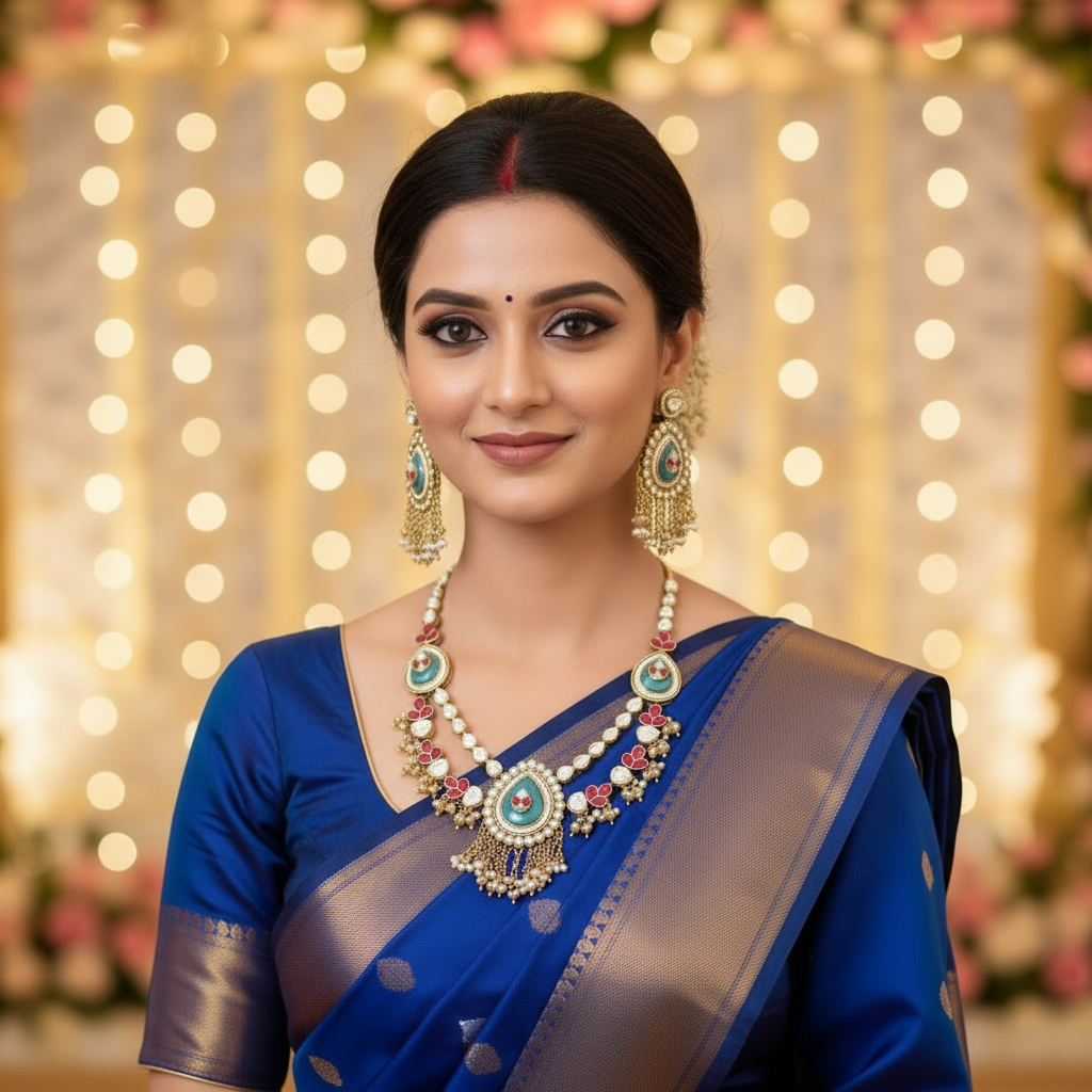 Ideal for weddings, poojas, cultural ceremonies or traditional outfits, these necklace sets pair beautifully with silk sarees, Kanjivarams, Banarasi drapes and lehengas.