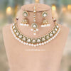 This necklace is the ultimate accessory option for the festive season. This set has a gorgeous circular floral pattern. The necklace has vibrant pearl detailing all over. The set also has a bright element of Kundan detailing in its structure. So, don't miss out on this gorgeous necklace set this eventful season as you have ramps to walk ahead.
