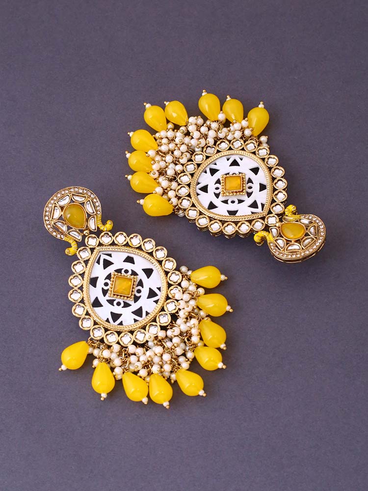 Fulfill your desire to style the most classic and pure form of ethnic jewellery with these Gold Plated rustic looking pair of earrings that have the impression of Godliness all over it!