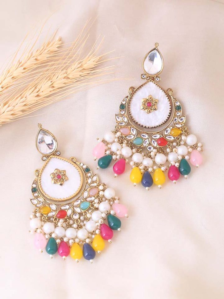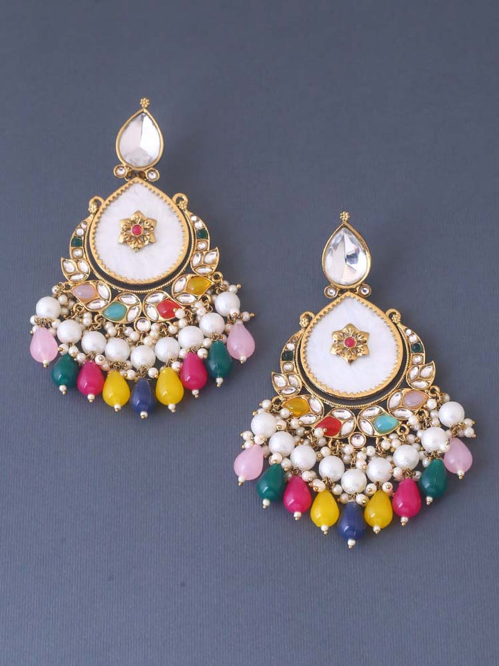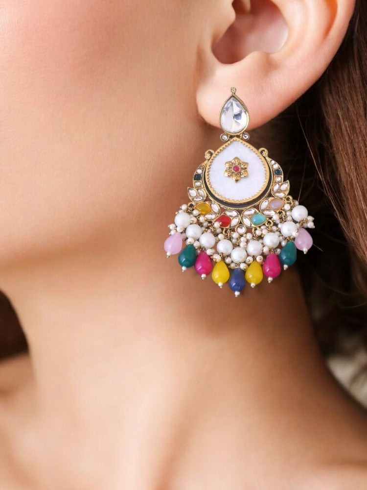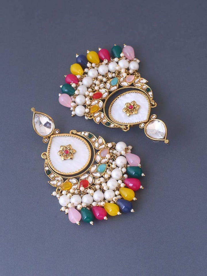 Traditional chaandbalis earrings with a priceless charm and unique embellishment of stones, crystals and pearls! Just the right choice for every traditional outfit!