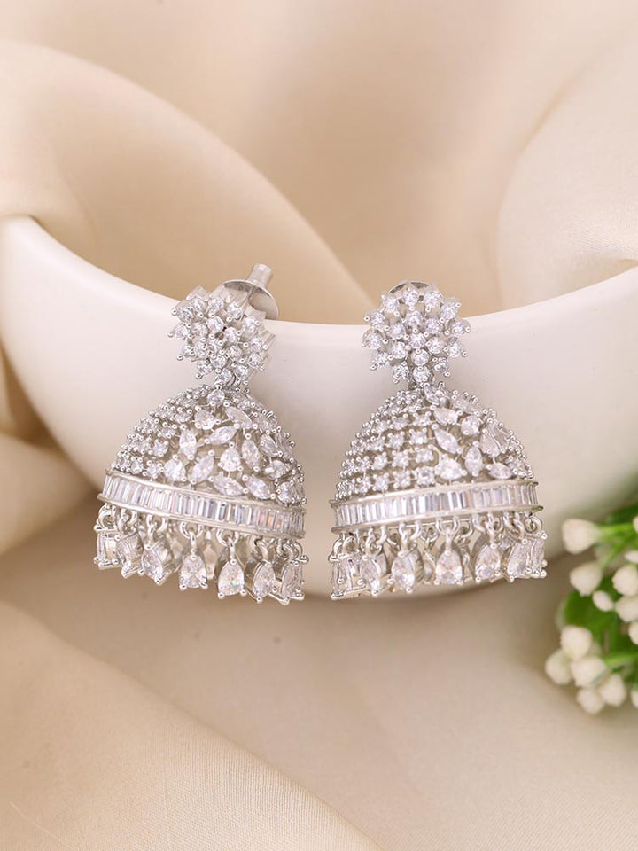 Sparkling elegance meets affordability with these exquisite American diamond earrings. Crafted with precision and adorned with dazzling simulated diamonds, these earrings effortlessly elevate any ensemble. The perfect accessory for adding a touch of glamour and sophistication to your look."