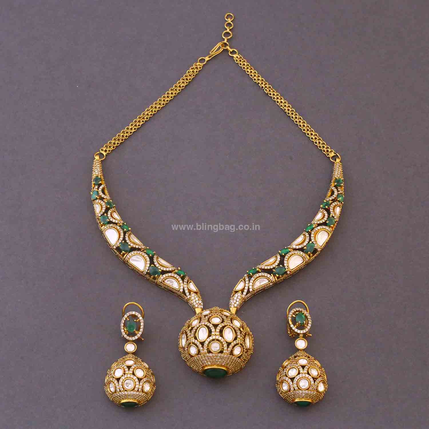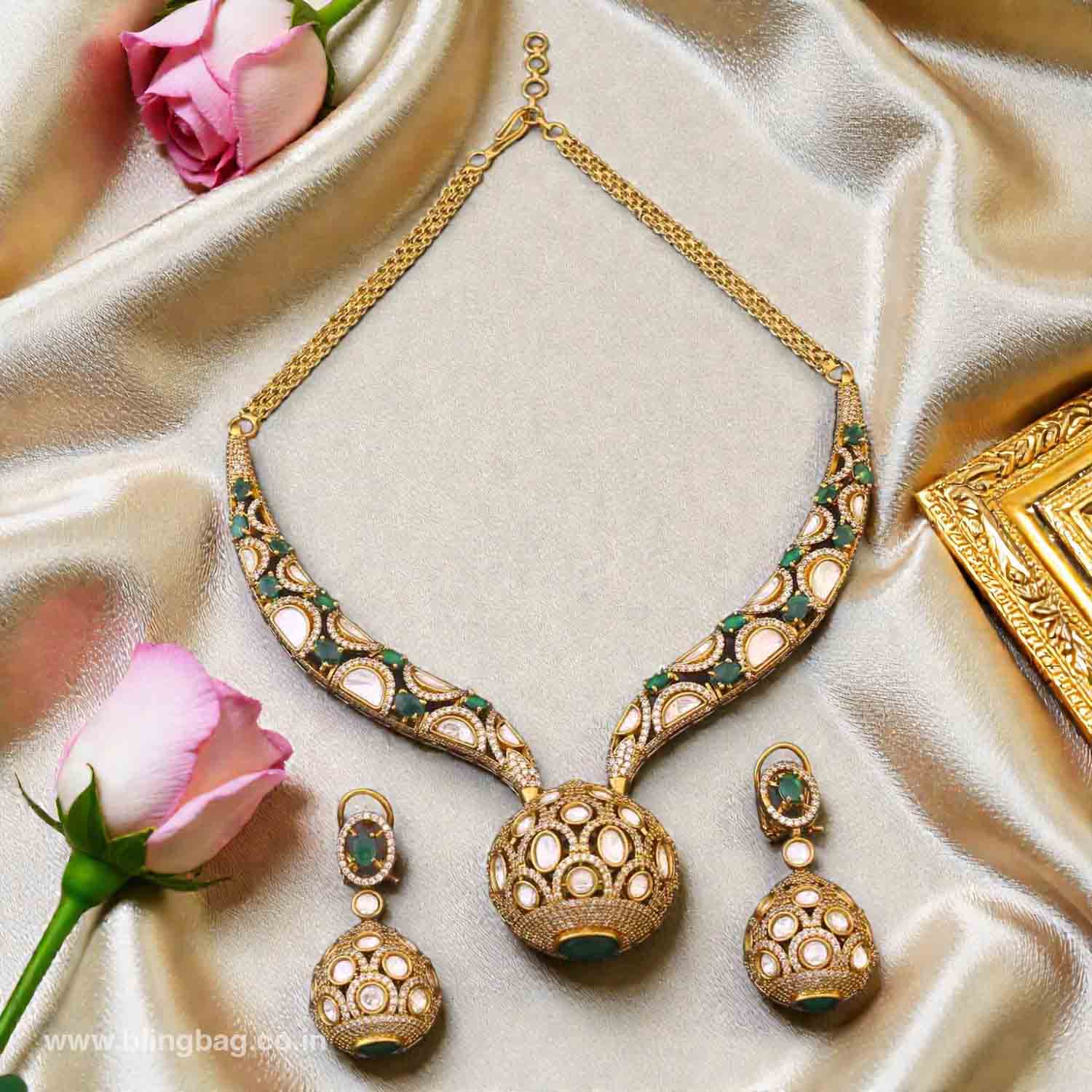 Pair it with heavy sarees or lehengas for weddings and receptions; keep the neckline simple to highlight the set.