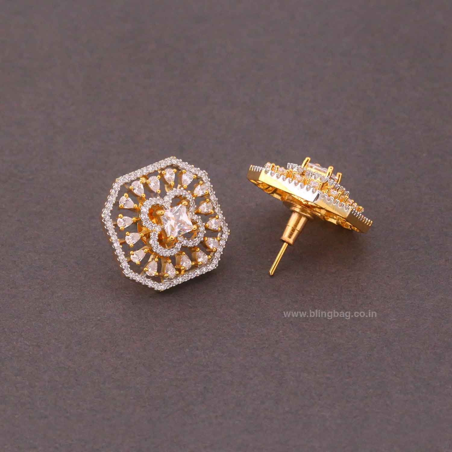 Pair these studs with gold jewelry and a classic outfit like a saree, kurti, or black dress to create a polished and elegant look