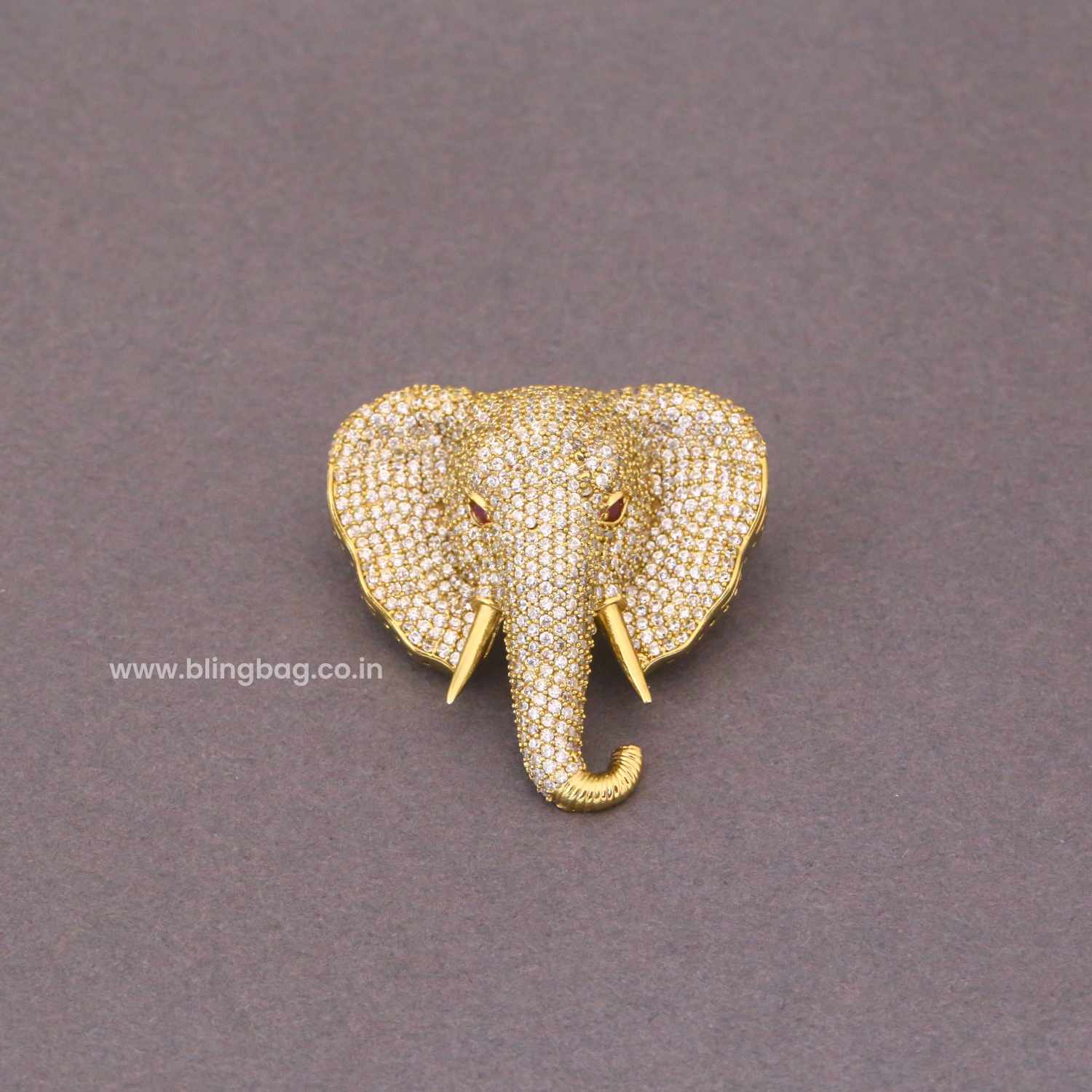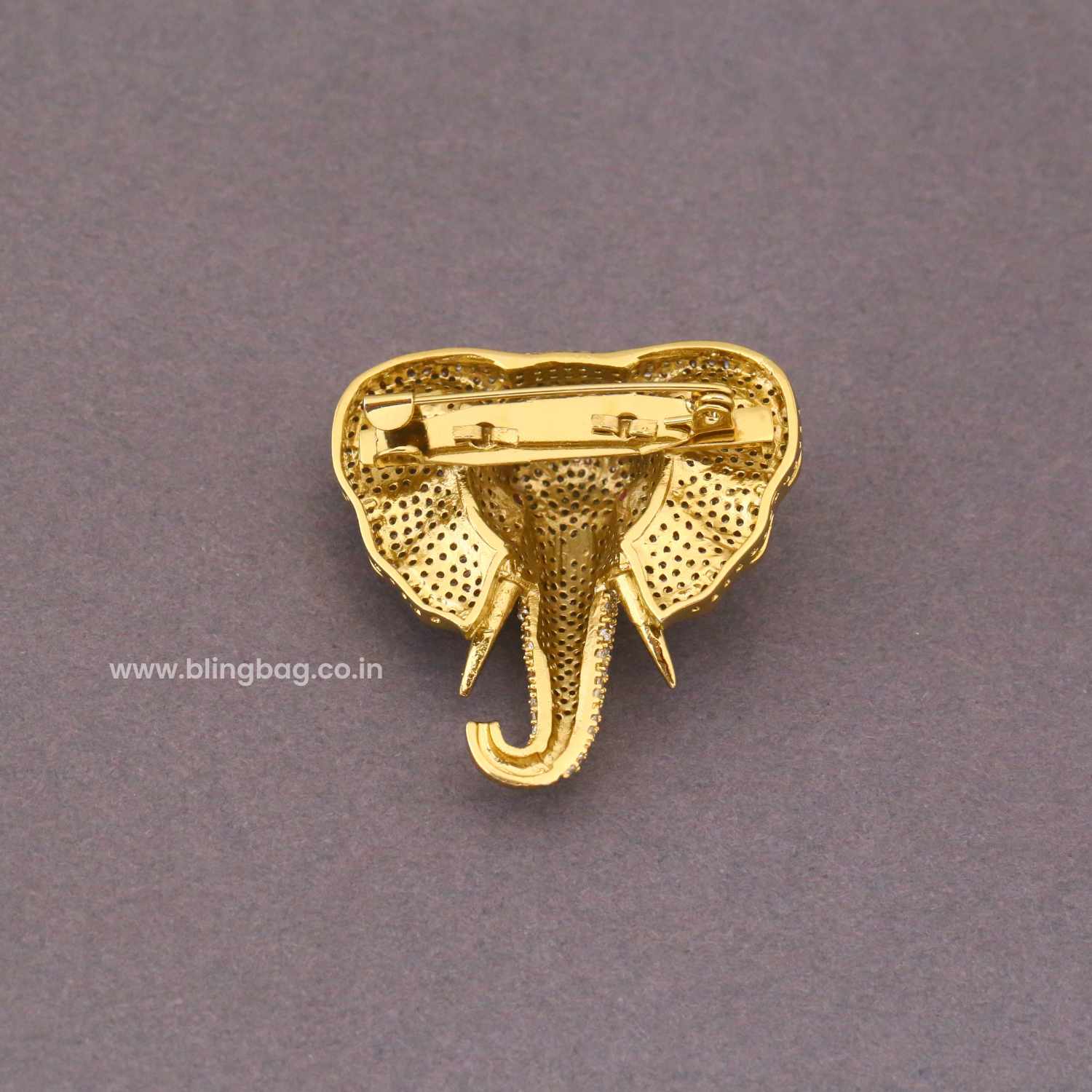Golden Glittering Elephant Brooch