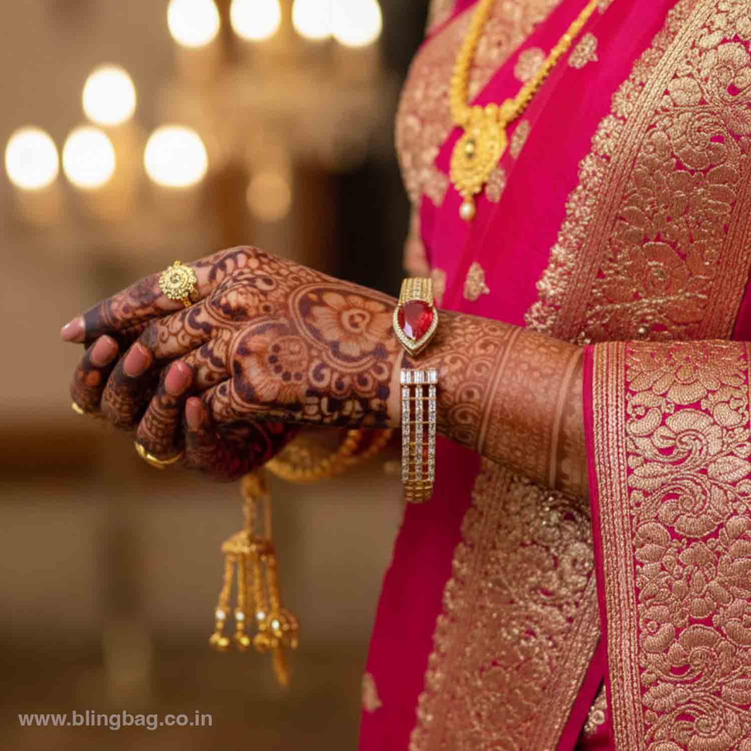 Pair it with silk sarees, lehengas, or festive ethnic wear for a graceful look.
