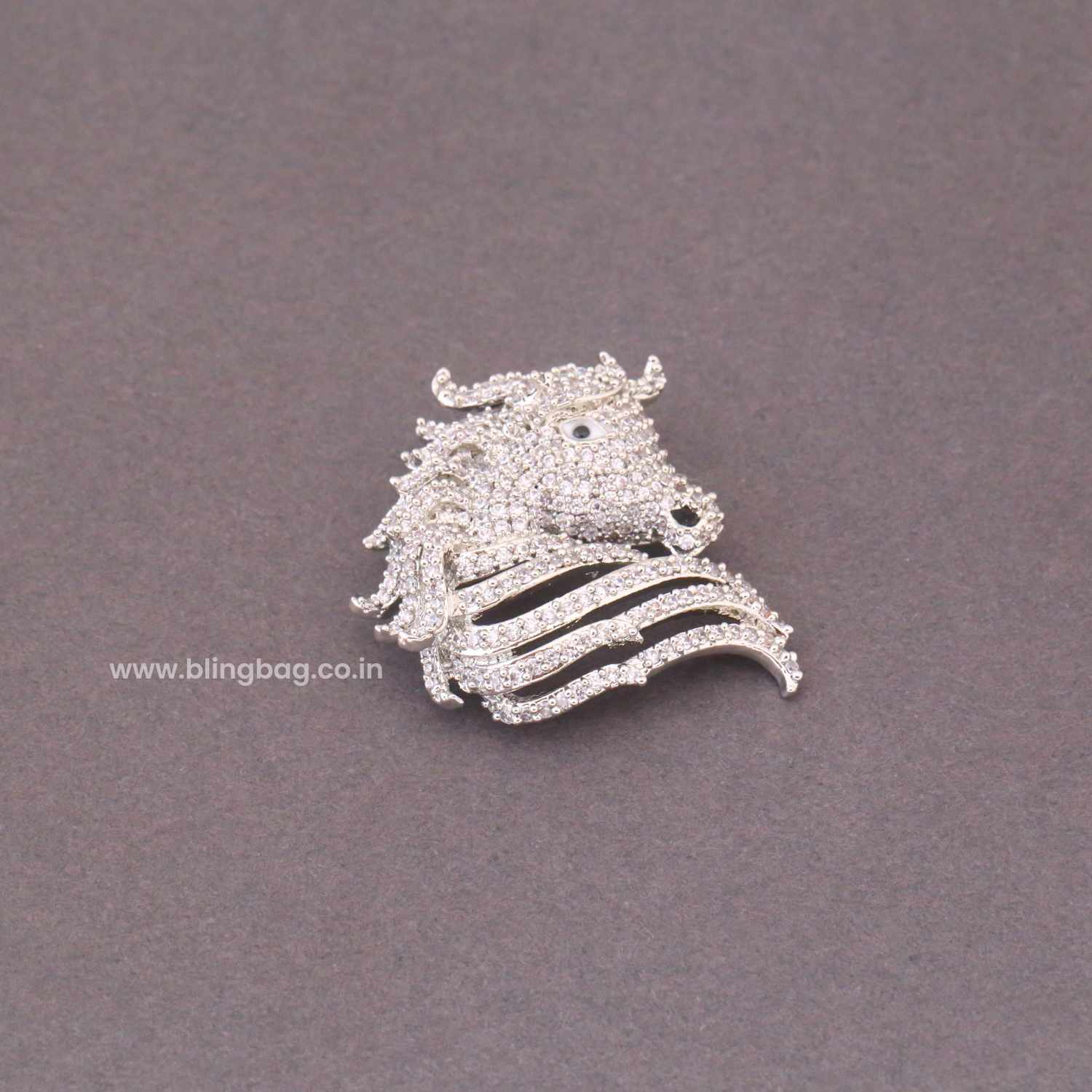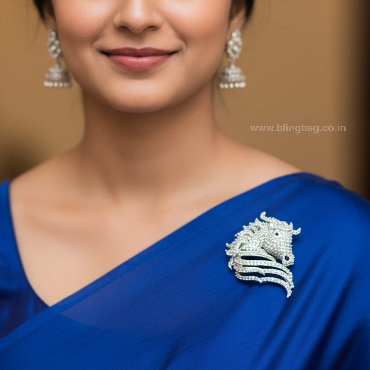 This striking stallion brooch captures the powerful elegance of a horse in motion, beautifully adorned with sparkling crystals. The flowing mane design and polished silver-tone finish make it a bold and sophisticated accessory.