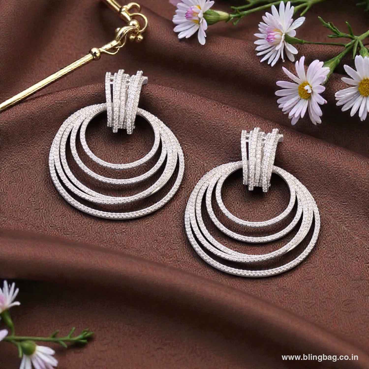 Sparkling elegance meets affordability with these exquisite American diamond earrings. Crafted with precision and adorned with dazzling simulated diamonds, these earrings effortlessly elevate any ensemble. The perfect accessory for adding a touch of glamour and sophistication to your look."