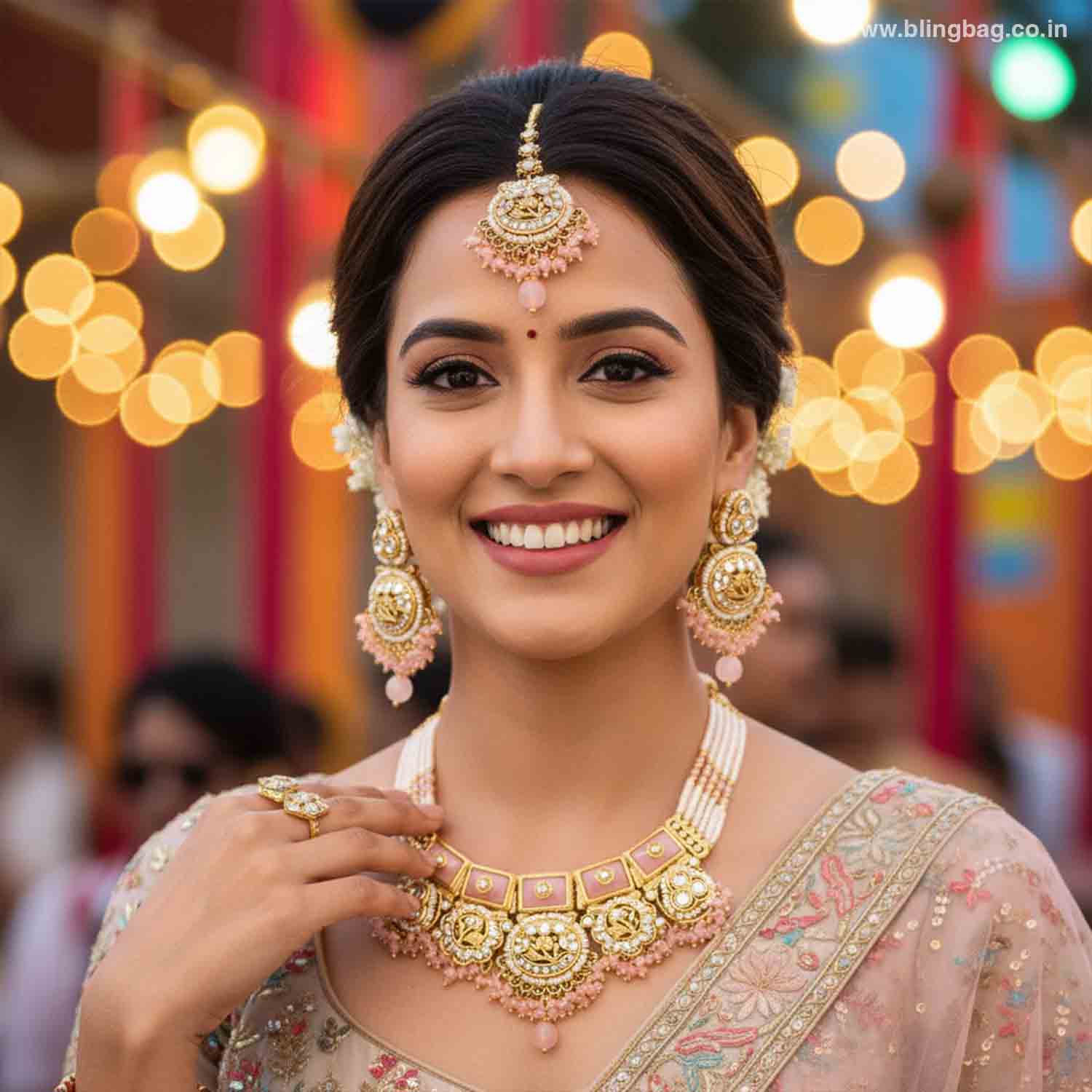 Pair this set with a richly embroidered saree, lehenga, or traditional silk outfit for weddings, festive events, or cultural functions to achieve a graceful and polished look.