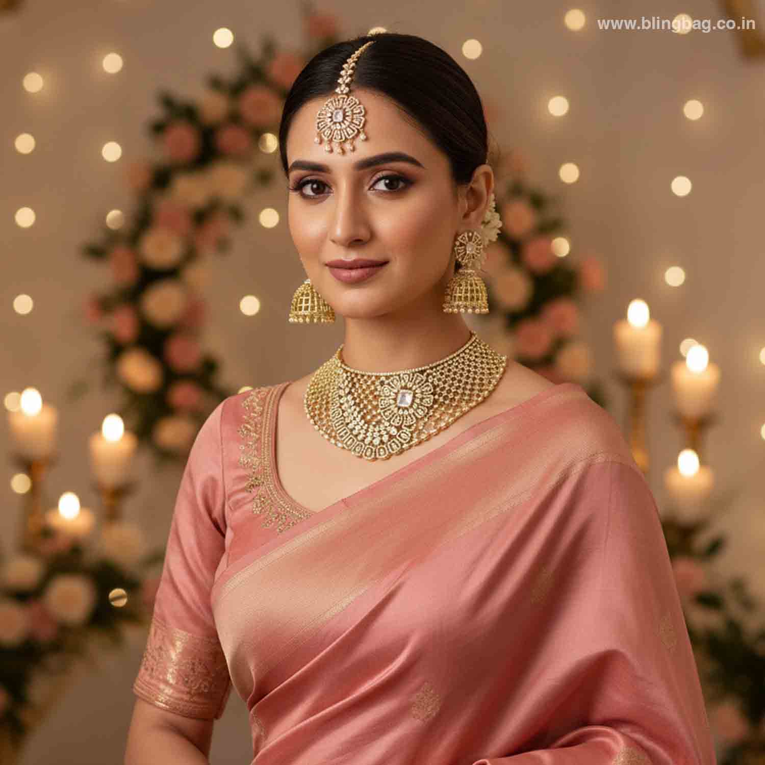 Wear this set with sarees, lehengas, or heavy ethnic outfits to enhance its royal appeal. Keep your neckline simple and opt for a sleek bun or soft curls to highlight the jewellery. Complete the look with subtle makeup and minimal accessories for a balanced finish.