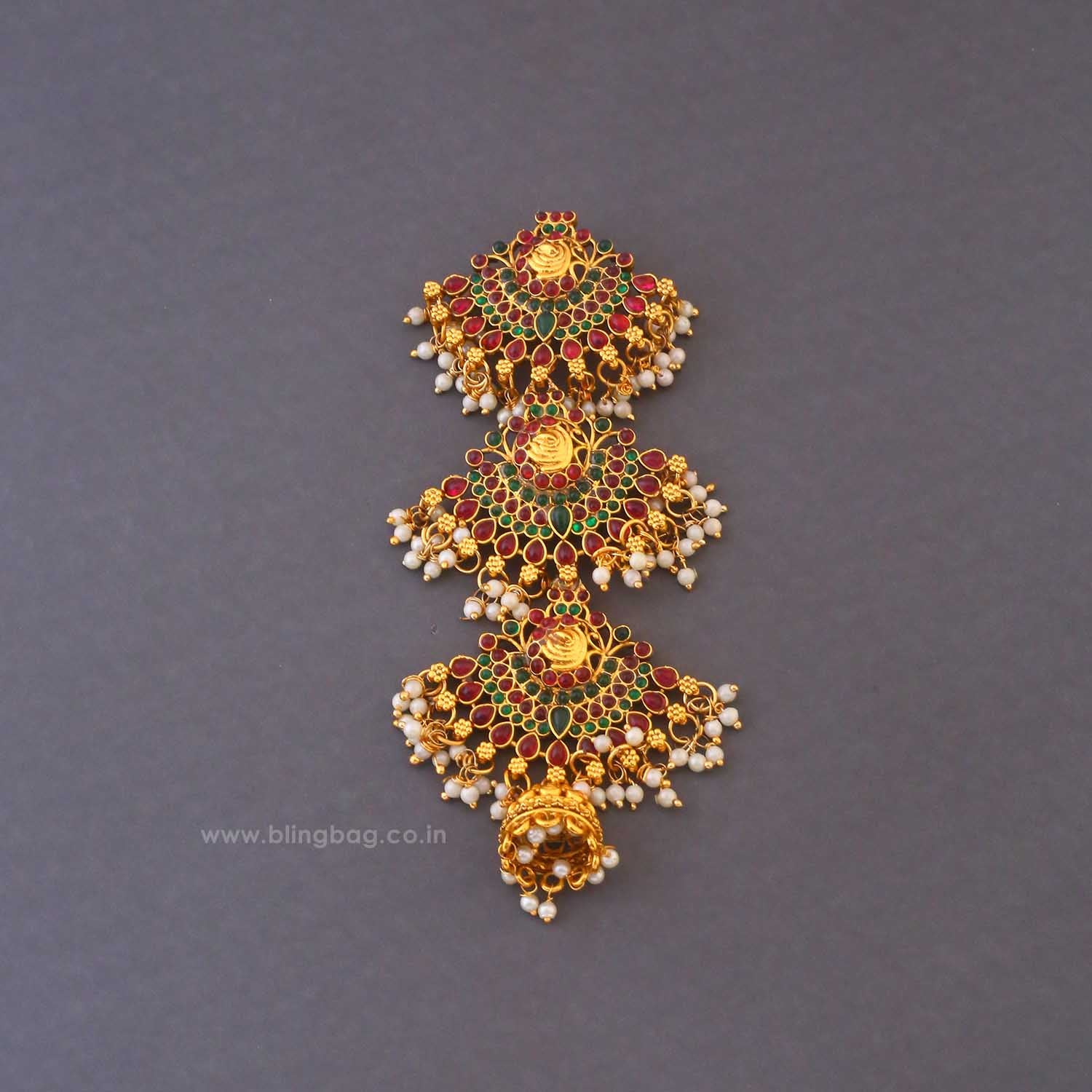 This elegant hair chooti is crafted with fine detailing and traditional motifs, making it a stunning accessory for festive and wedding occasions. Its versatile design adds a graceful charm to both traditional hairstyles and contemporary hairdos, making it a must-have addition to your accessory collection.