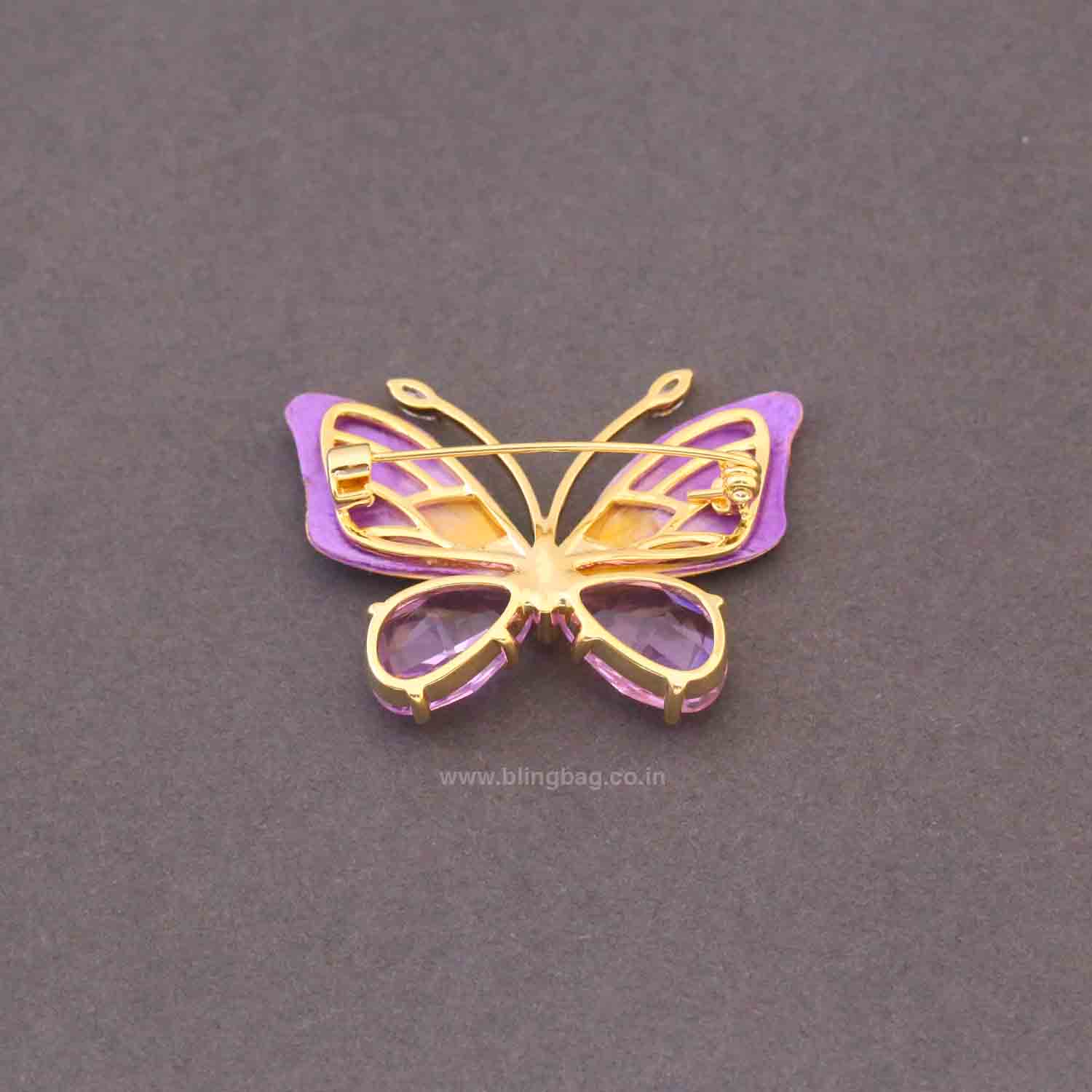 This graceful butterfly brooch features soft purple and golden enamel wings paired with sparkling crystal accents. The faceted stones and delicate detailing create a charming, elegant look that adds instant beauty to any outfit.