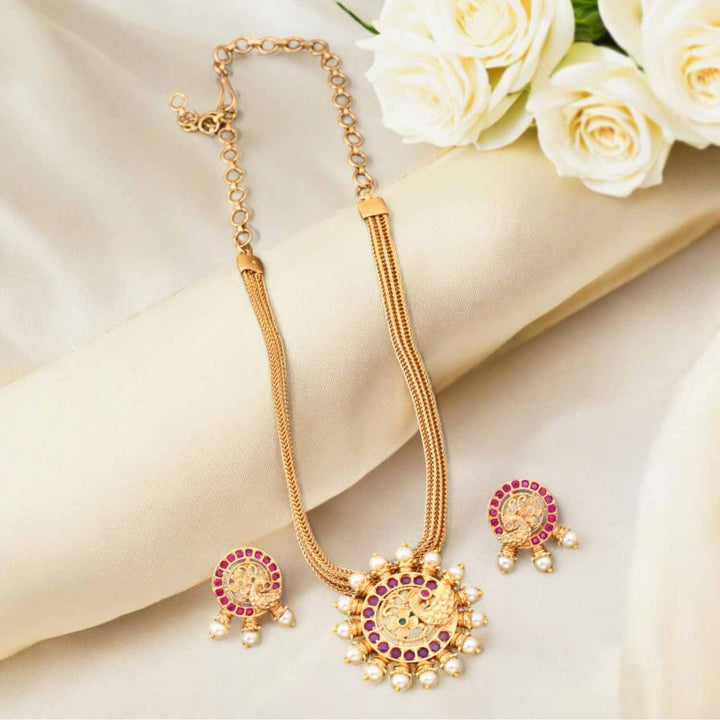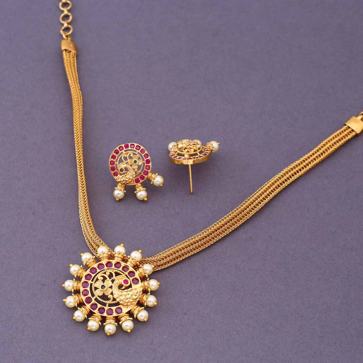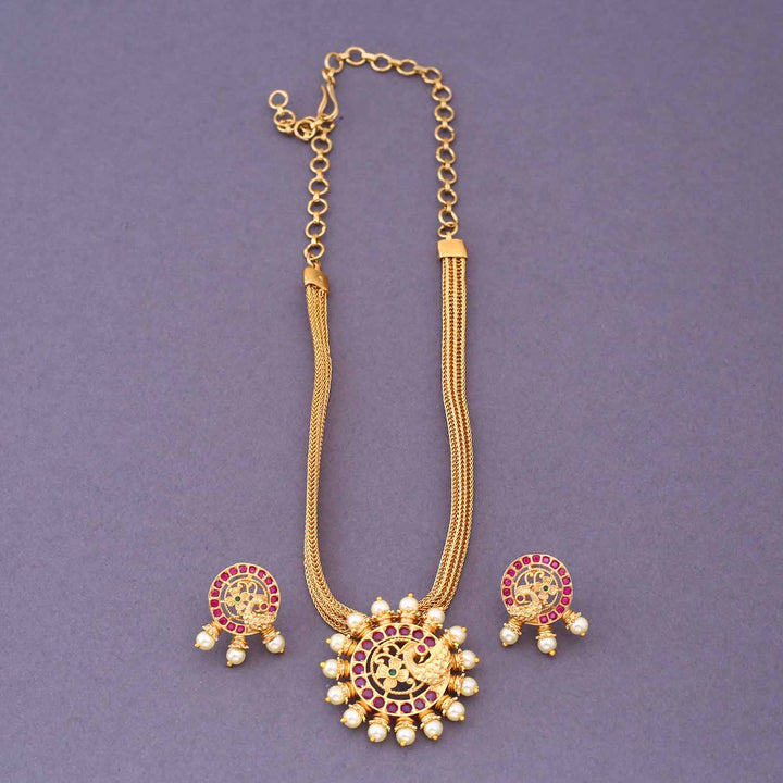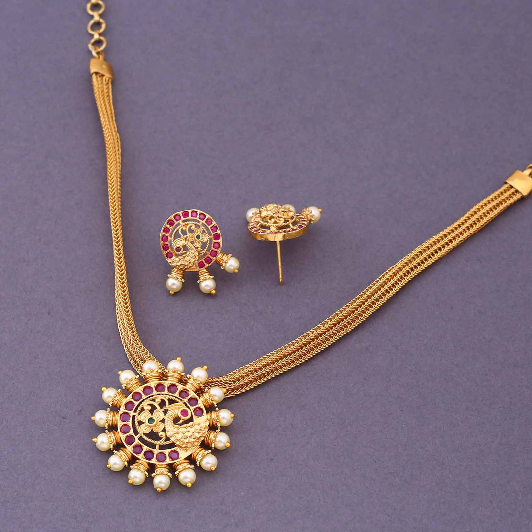 Golden Kanupreet Antique Pendant Set - New Arrival