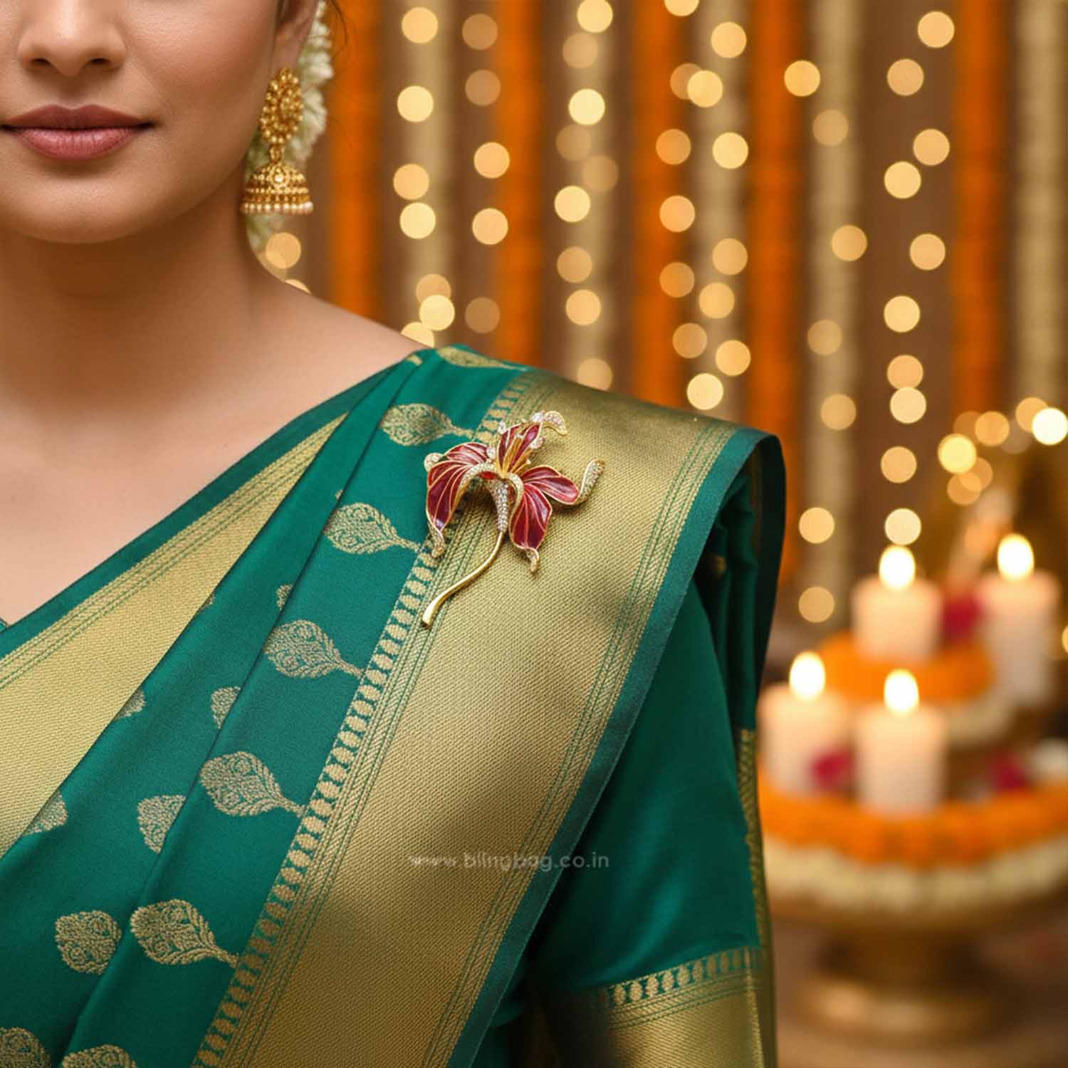 Pin it on your blazer, saree pallu, dupatta, or handbag to elevate your style effortlessly. Ideal for festive occasions, parties, and everyday elegance.