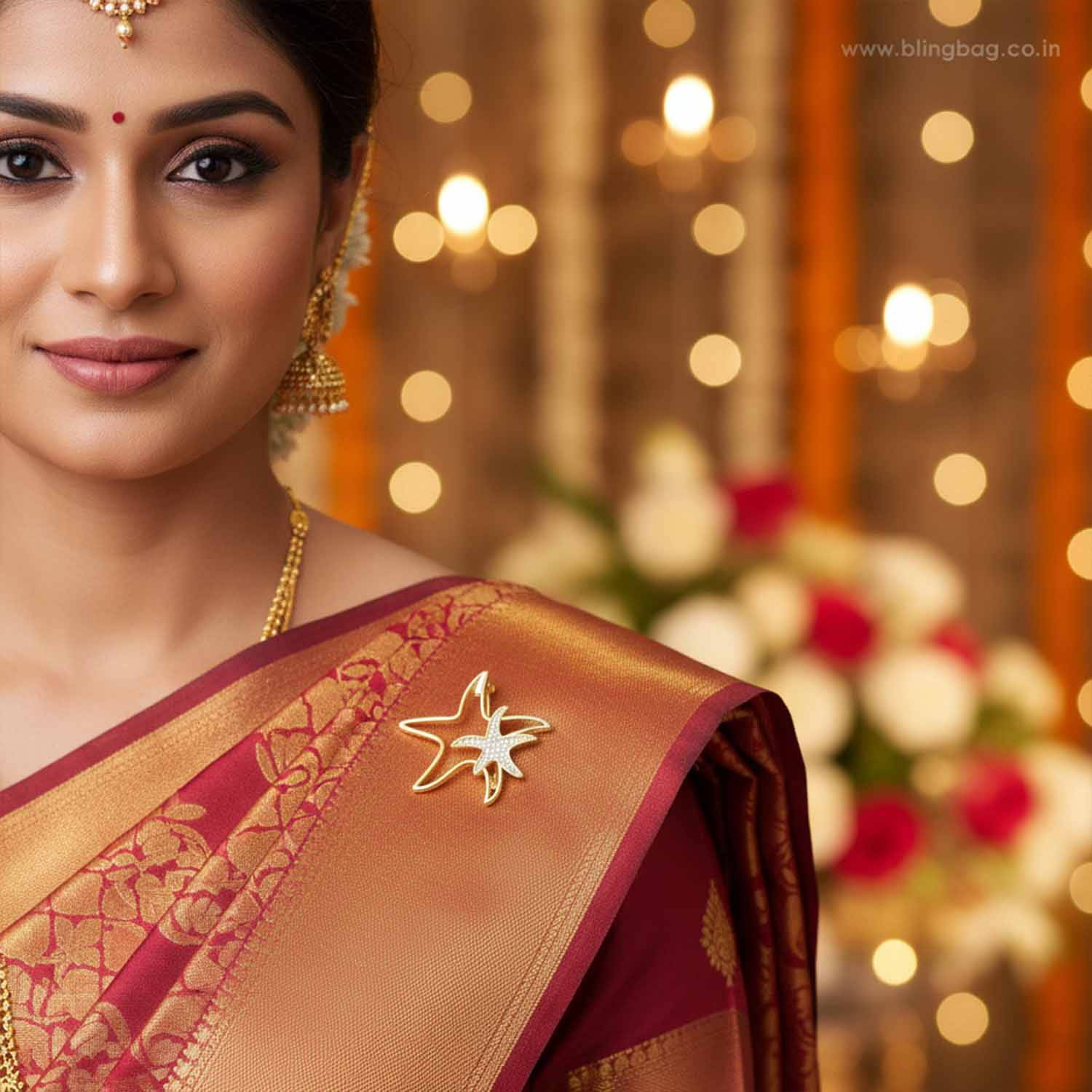 Pin it on your blazer, saree pallu, dupatta, or handbag to elevate your style effortlessly. Ideal for festive occasions, parties, and everyday elegance.