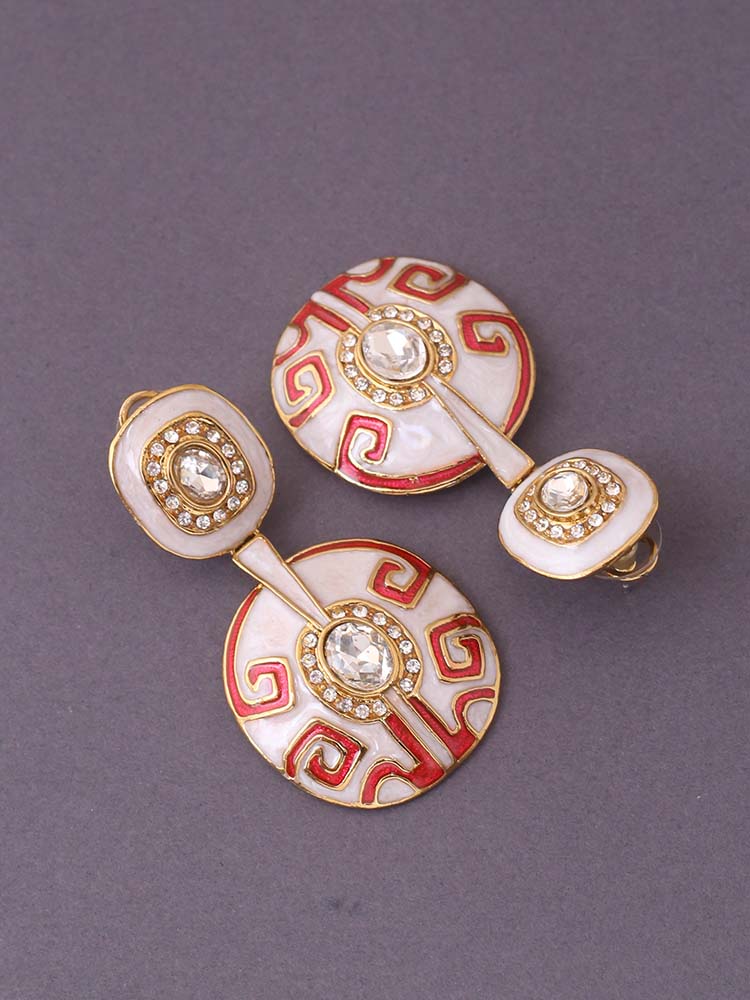 Fulfill your desire to style the most classic and pure form of ethnic jewellery with these Gold Plated rustic looking pair of earrings that have the impression of Godliness all over it!