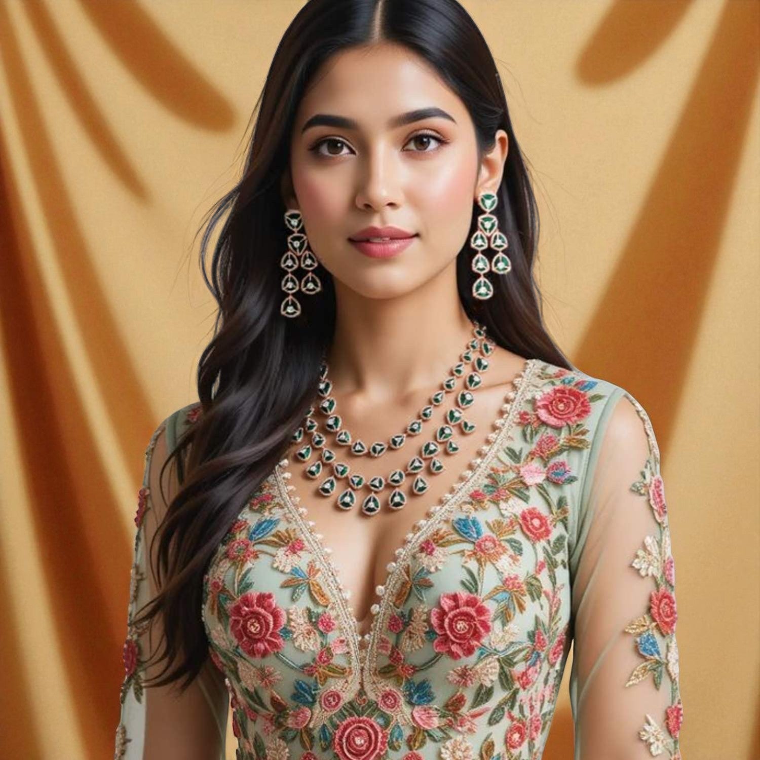 Premium quality american diamond set with superb gemstones crafted for festive wedding and your upcoming special occasions.