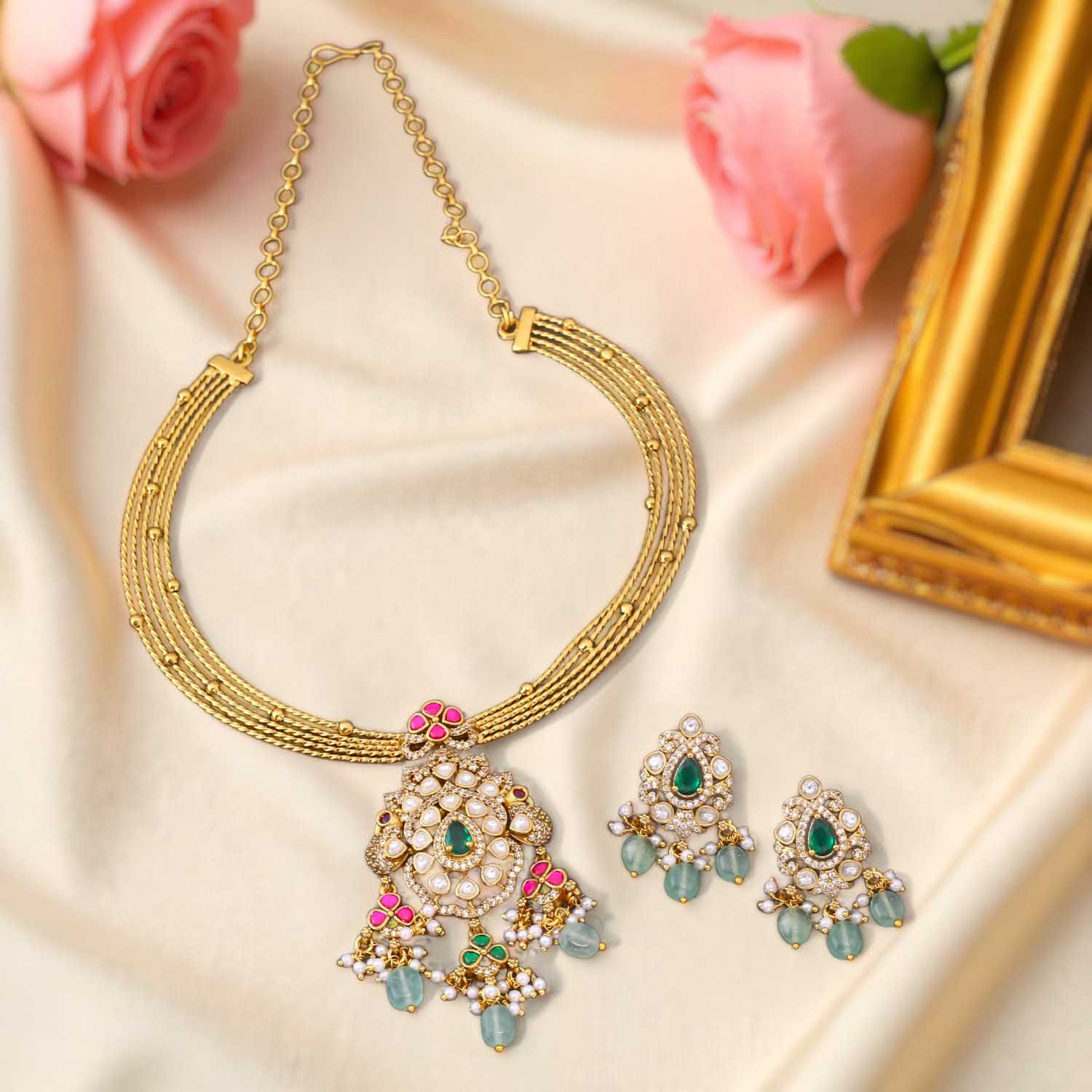 Crafted with intricate Victorian-inspired detailing, this necklace set adds timeless charm to your collection. Perfectly balanced with elegance and grace, it’s designed to complement both festive and contemporary looks.