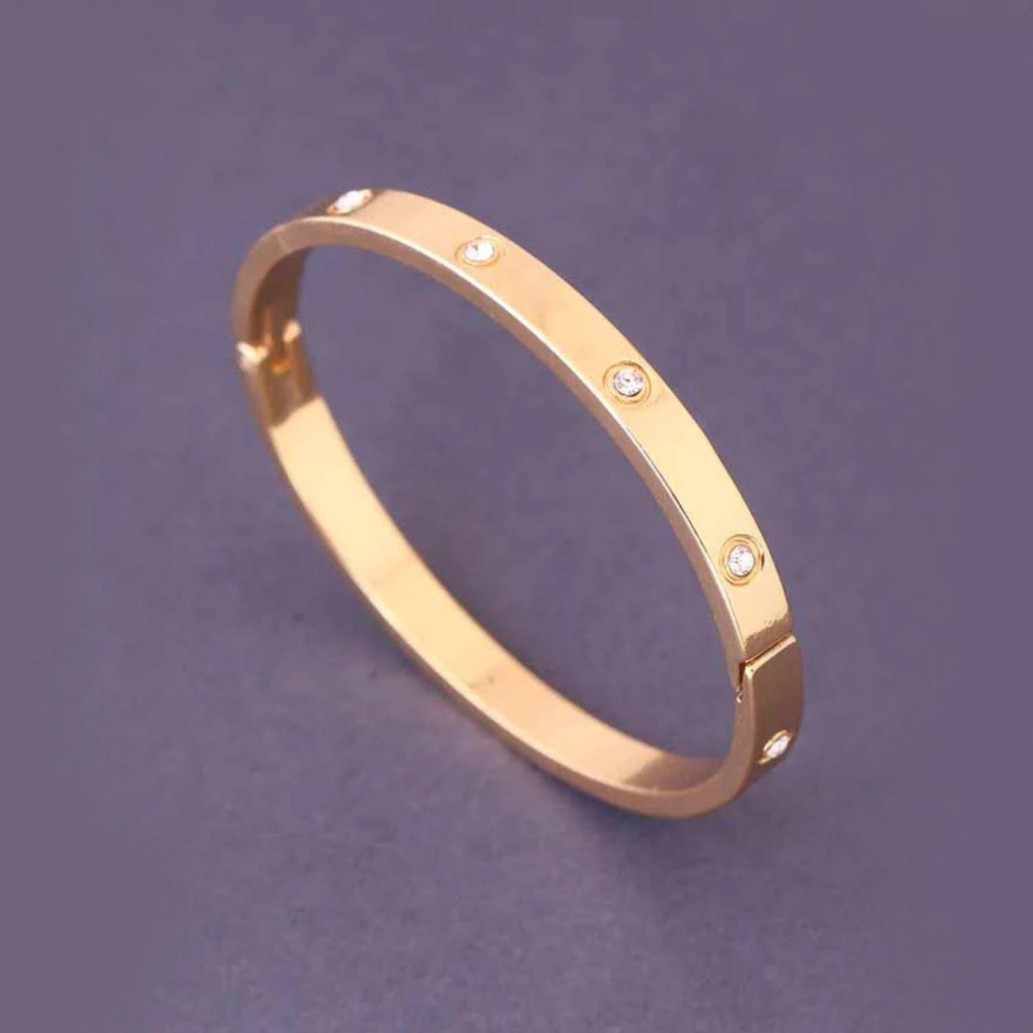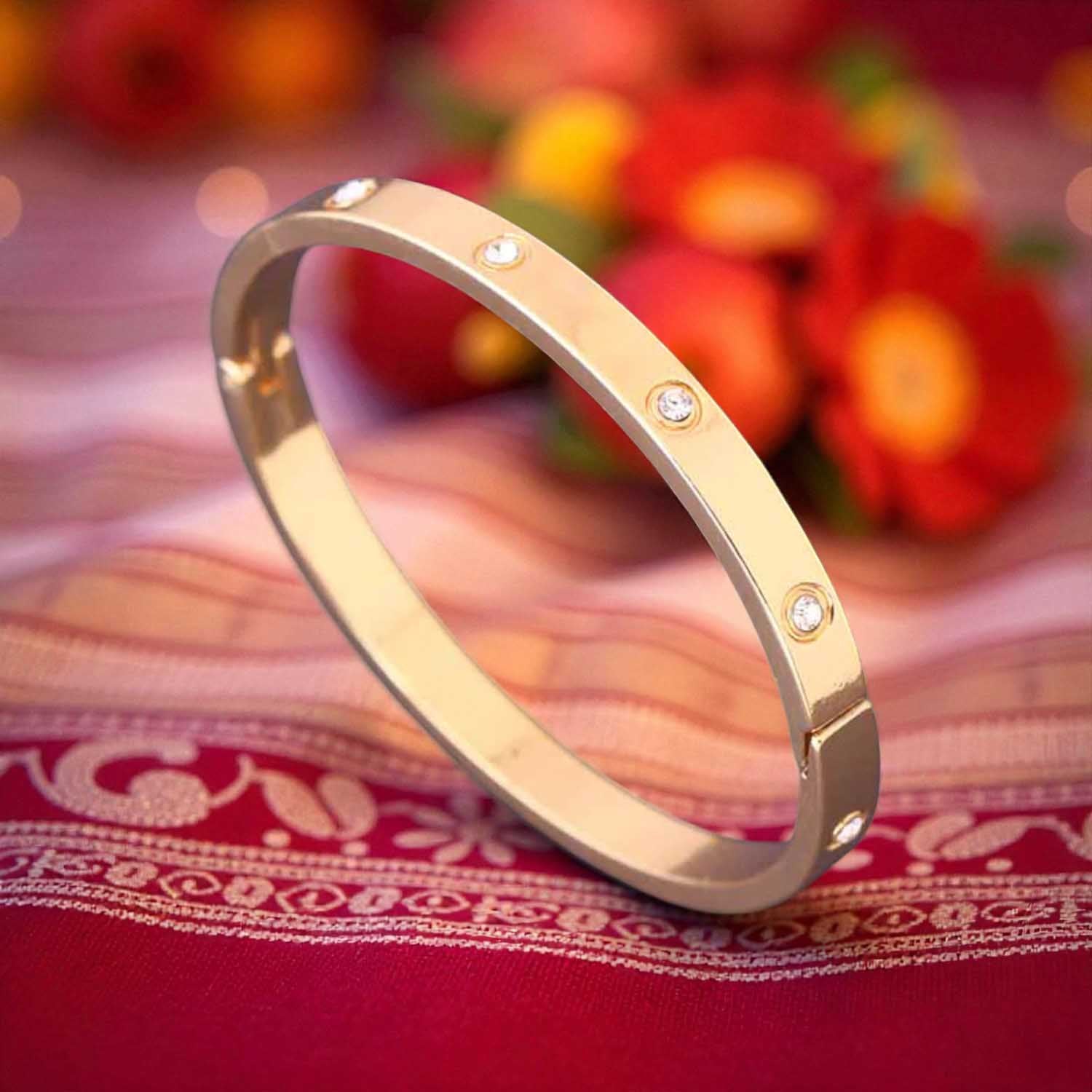 💛 Elegant Gold Bracelet – A sleek gold-toned bangle embellished with crystal detailing, perfect for stacking or wearing solo.