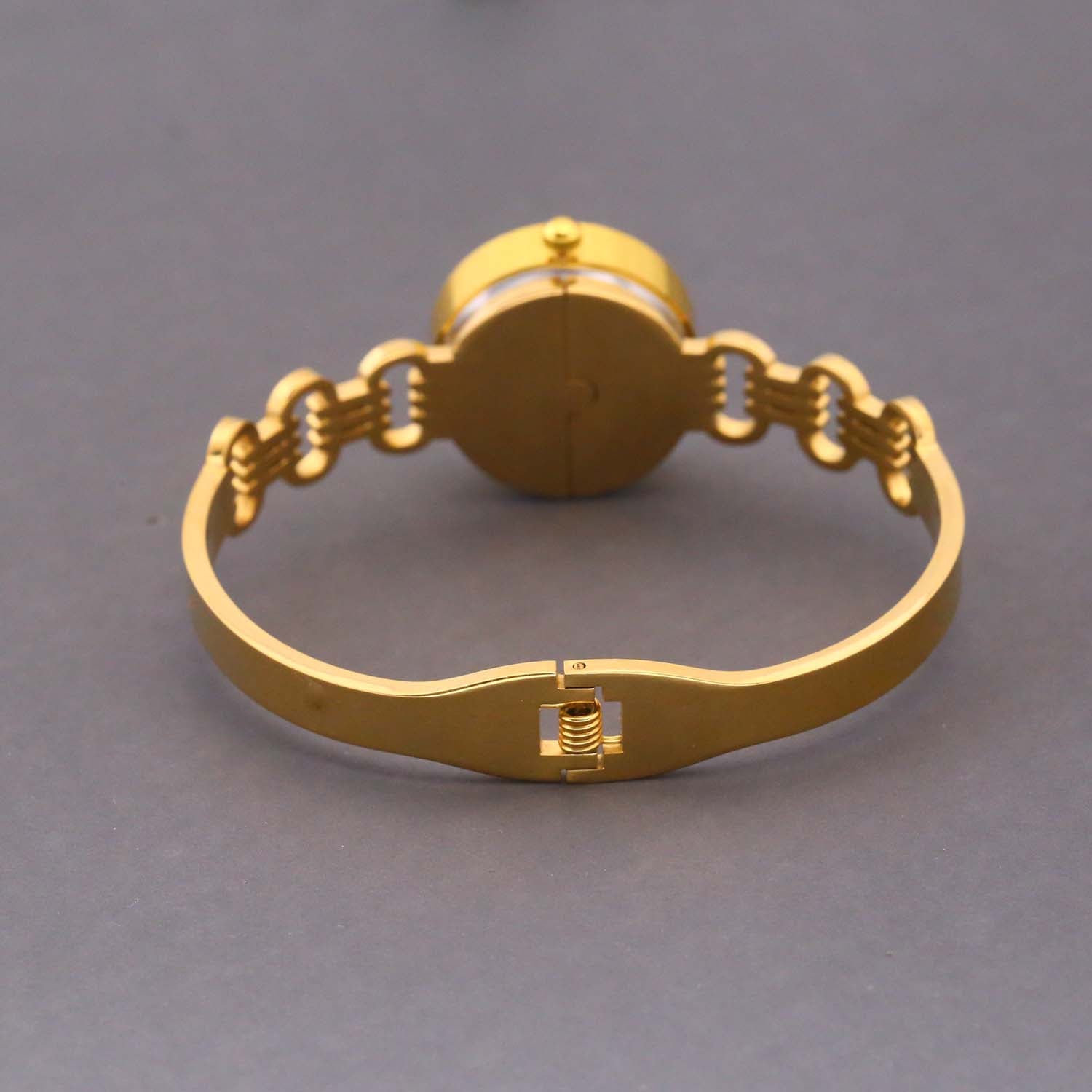 Elegant gold-plated bangle-style strap with ornamental cutout links.