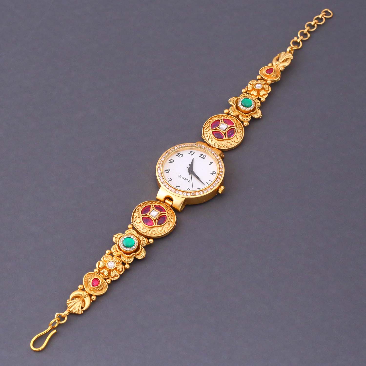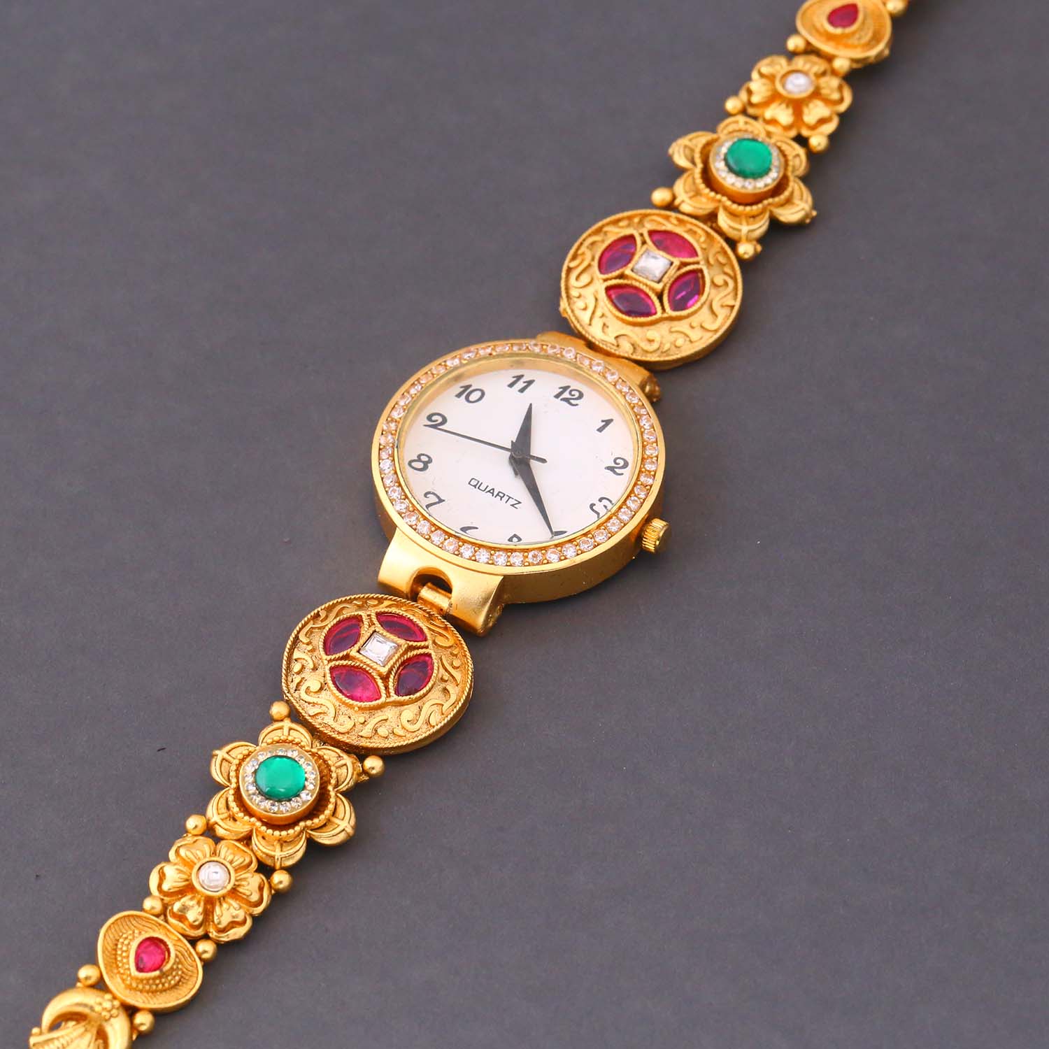 Blingbag Gold-Plated Kundan Kanika Dial Watch