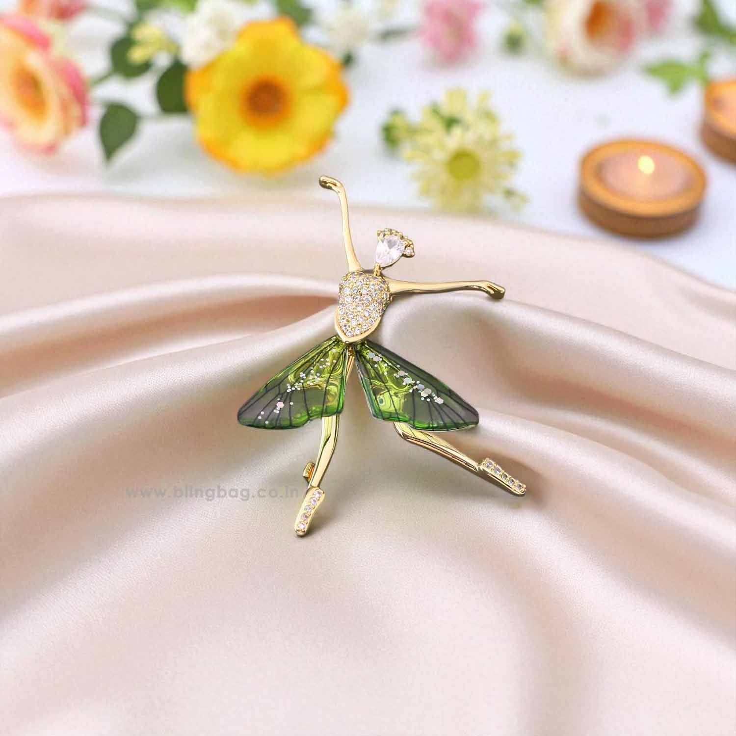Green Dancing Girl Brooch