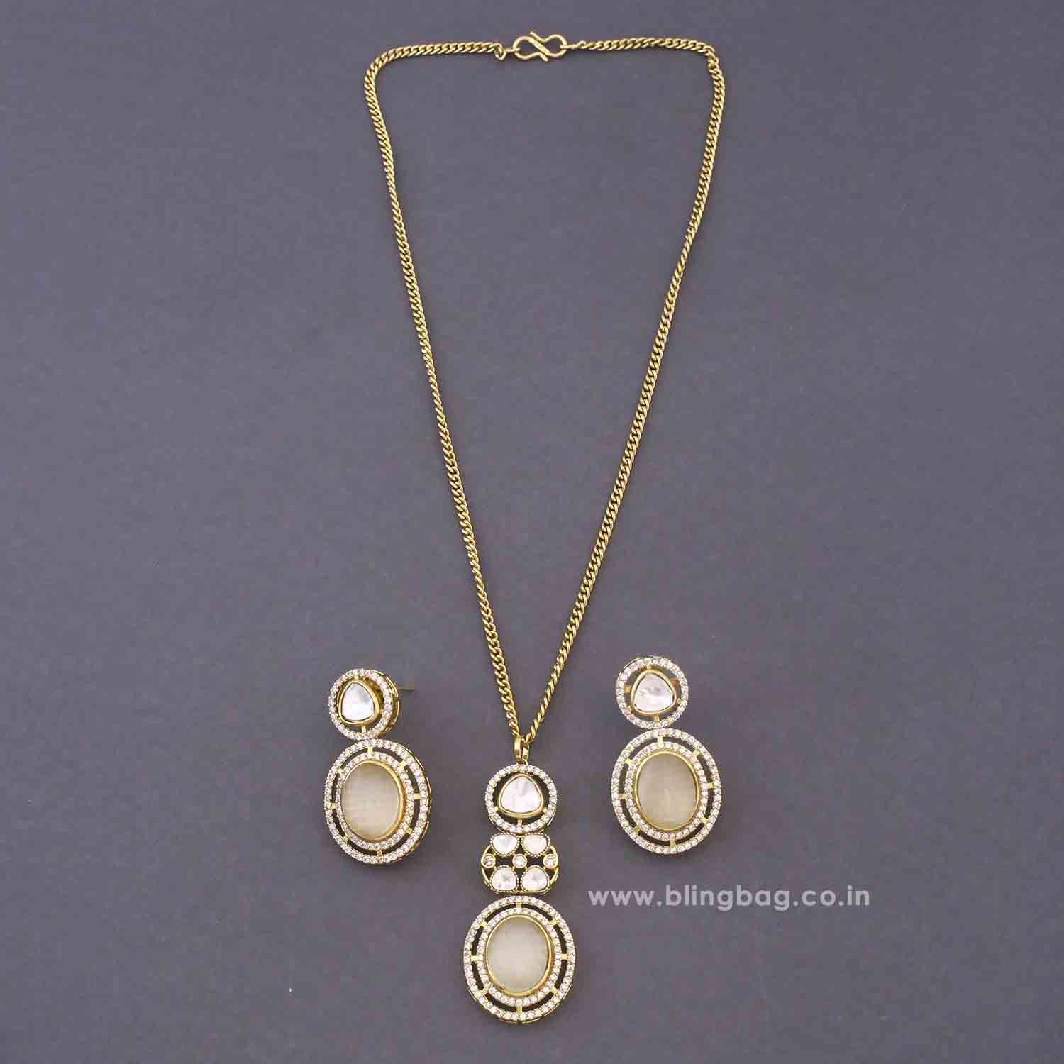 The necklace set epitomizes the grandeur and spiritual essence of Indian heritage, blending divine motifs with exquisite craftsmanship. Crafted with precision, each piece in the set showcases a harmonious blend of tradition and elegance.