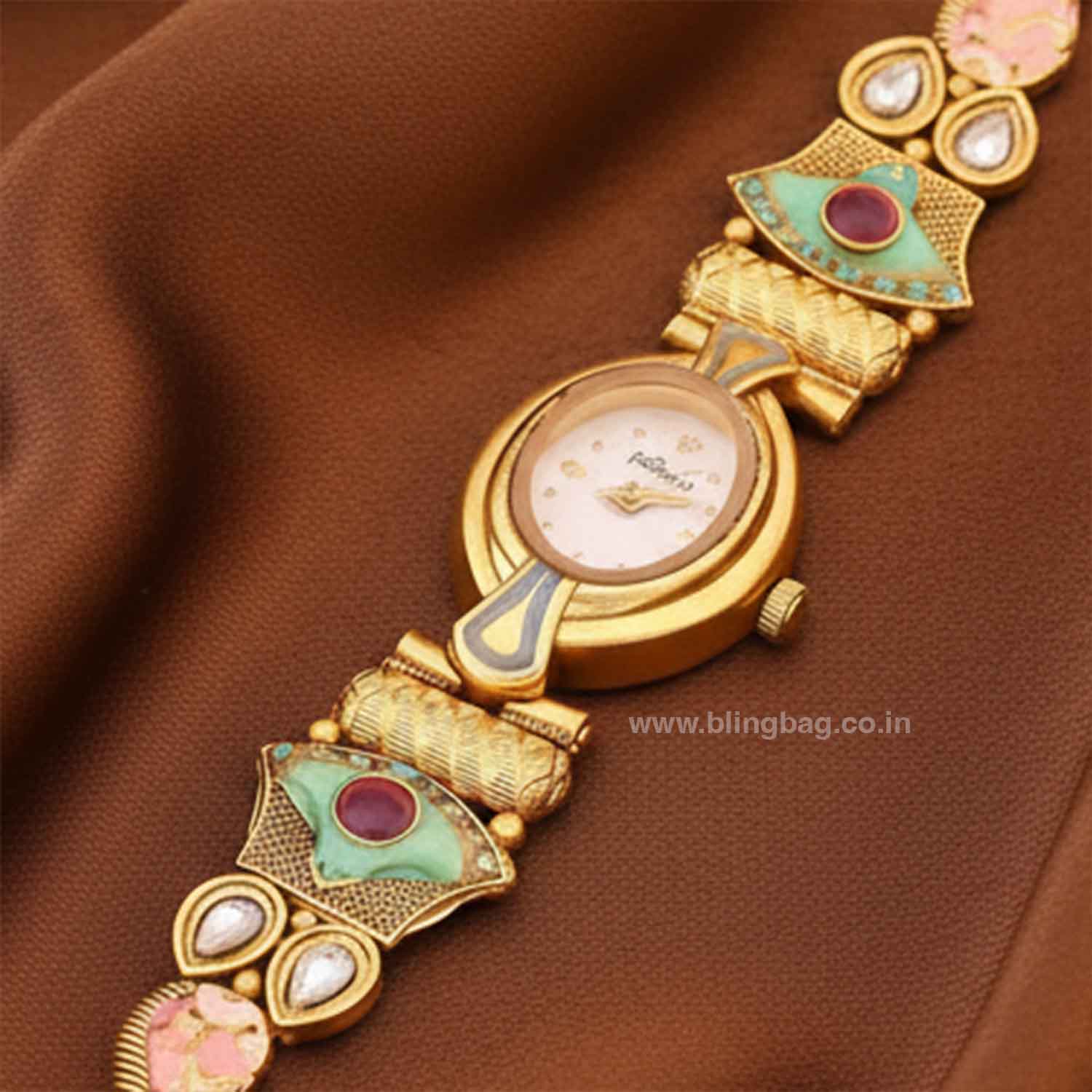 Pair it with lehengas, silk sarees, or embroidered kurtis to highlight its vibrant colors. Keep your other jewelry minimal to let this statement watch stand out.