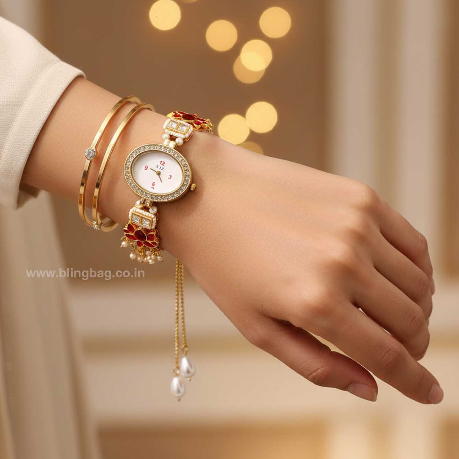These heritage-inspired bracelet watches from BlingBag combine traditional Indian jewelry aesthetics with functional quartz timekeeping.