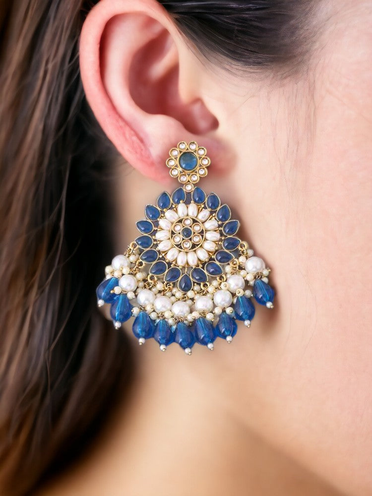 Traditional chaandbalis earrings with a priceless charm and unique embellishment of stones, crystals and pearls! Just the right choice for every traditional outfit!