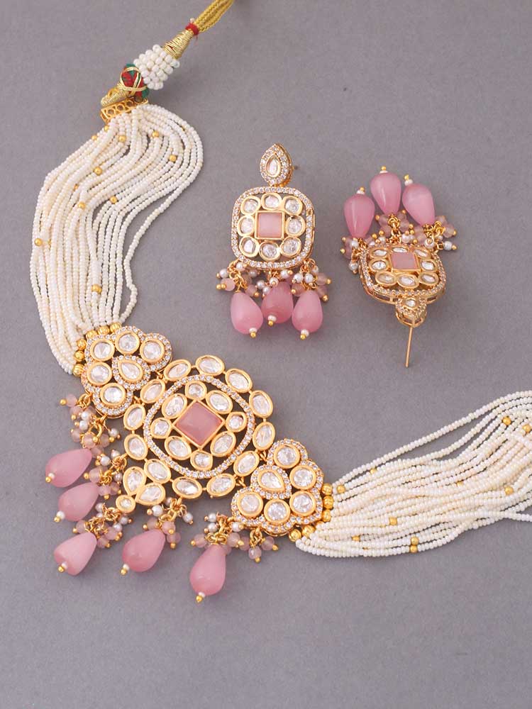 Ethnic choker necklace sets, embellished with vibrant gemstones and intricate designs, exude timeless elegance.