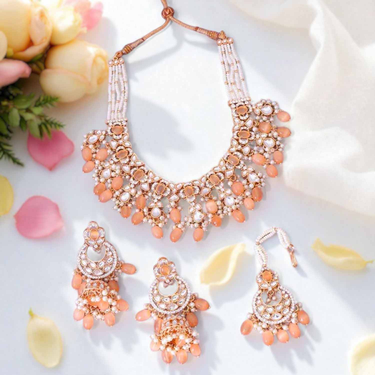 Peach Kaamil Kundan Jewellery Set - EOSS