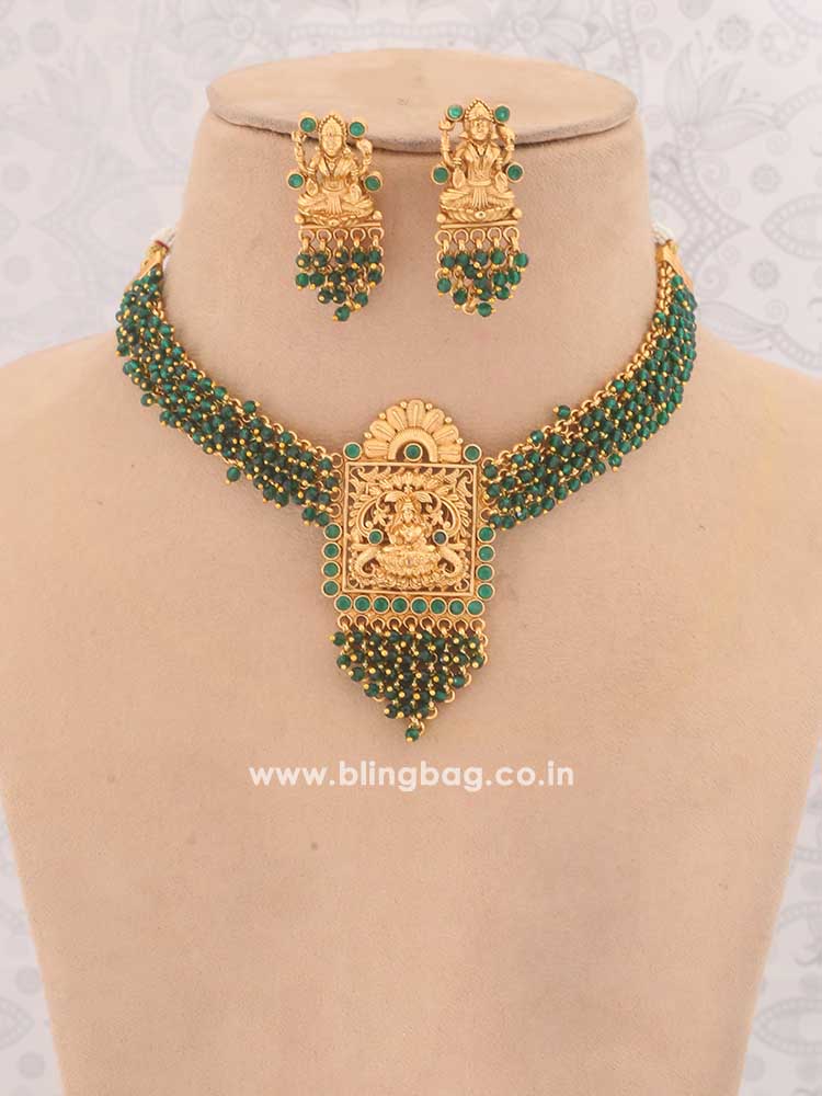 Emerald Ghorarupa Temple Jewellery Set