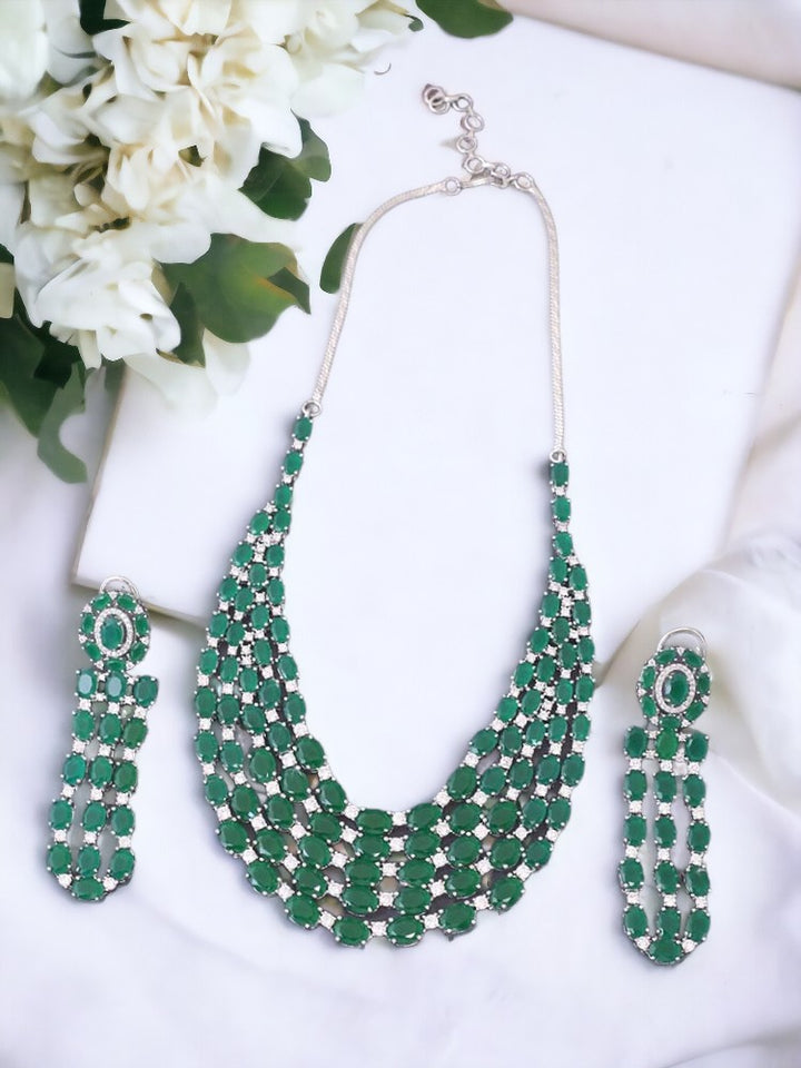 Each necklace set comes complete with matching earrings, so you can easily complete your look and make a statement. Whether you choose a classic silver or gold setting or opt for a more modern rose gold finish, these sets are sure to complement any outfit and add a touch of glamour.