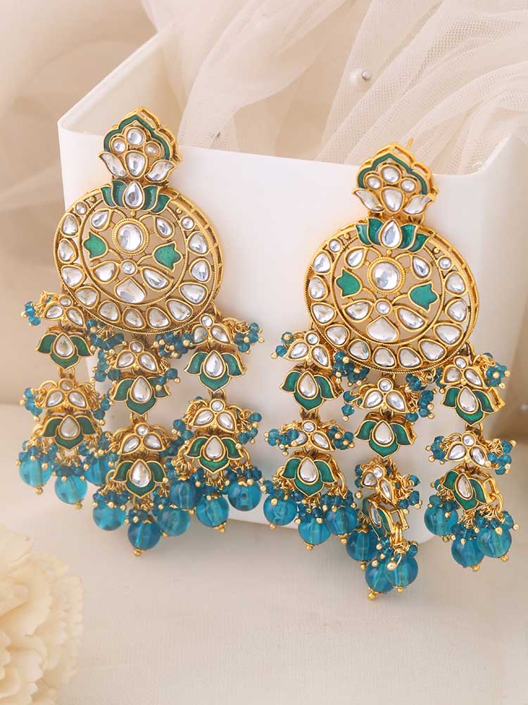 Fulfill your desire to style the most classic and pure form of ethnic jewellery with these Gold Plated rustic looking pair of earrings that have the impression of Godliness all over it!