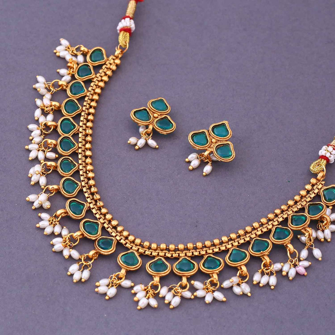 Emerald Tejpreet Antique Jewellery Set - New Arrival