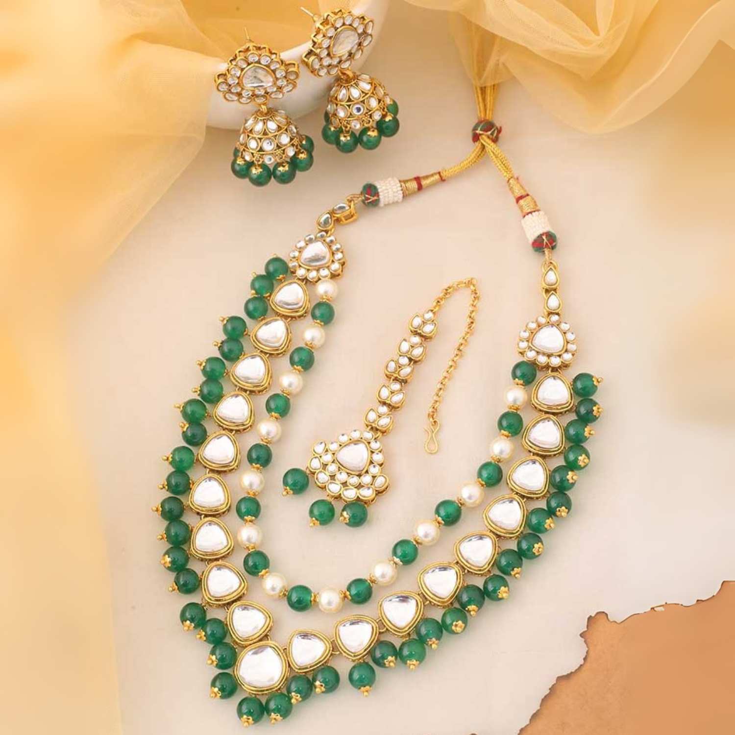 Emerald Virika Kundan Jewellery Set